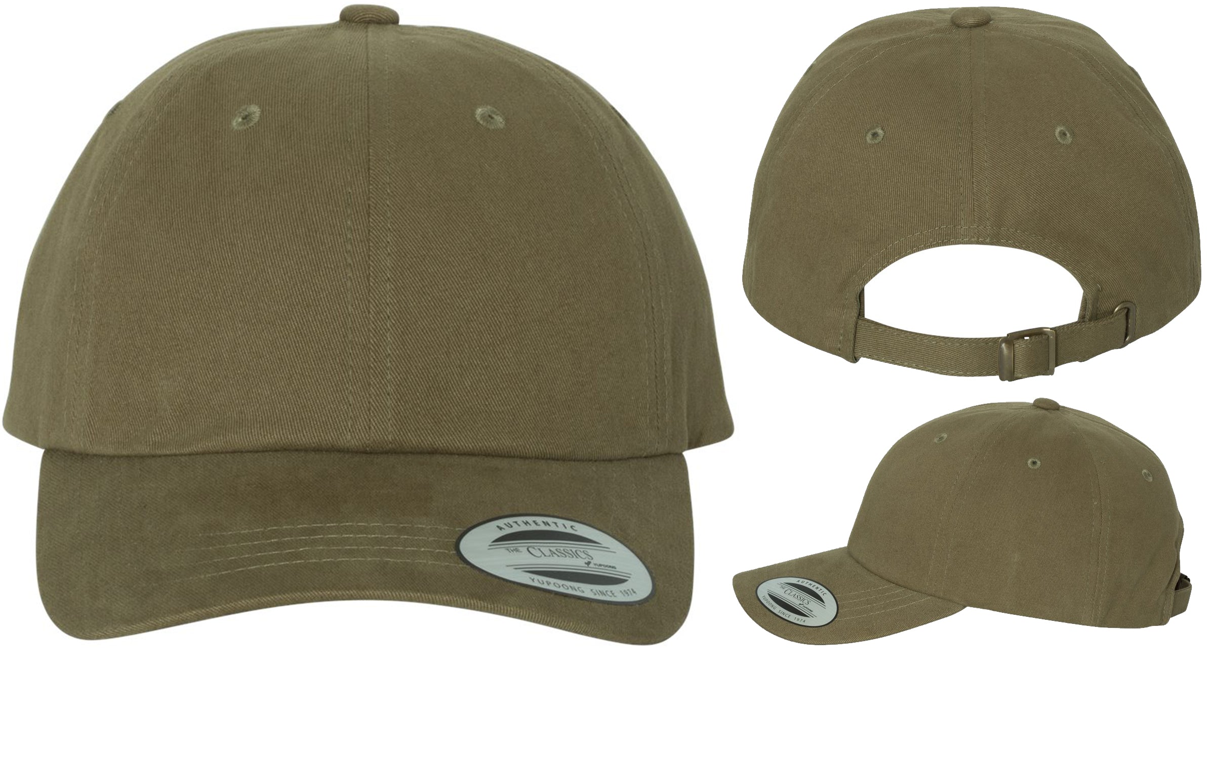The Yupoong 6245PT is a low-profile "dad hat", unstructured cotton cap with a pre-curved visor and adjustable strap, ideal for casual wear.