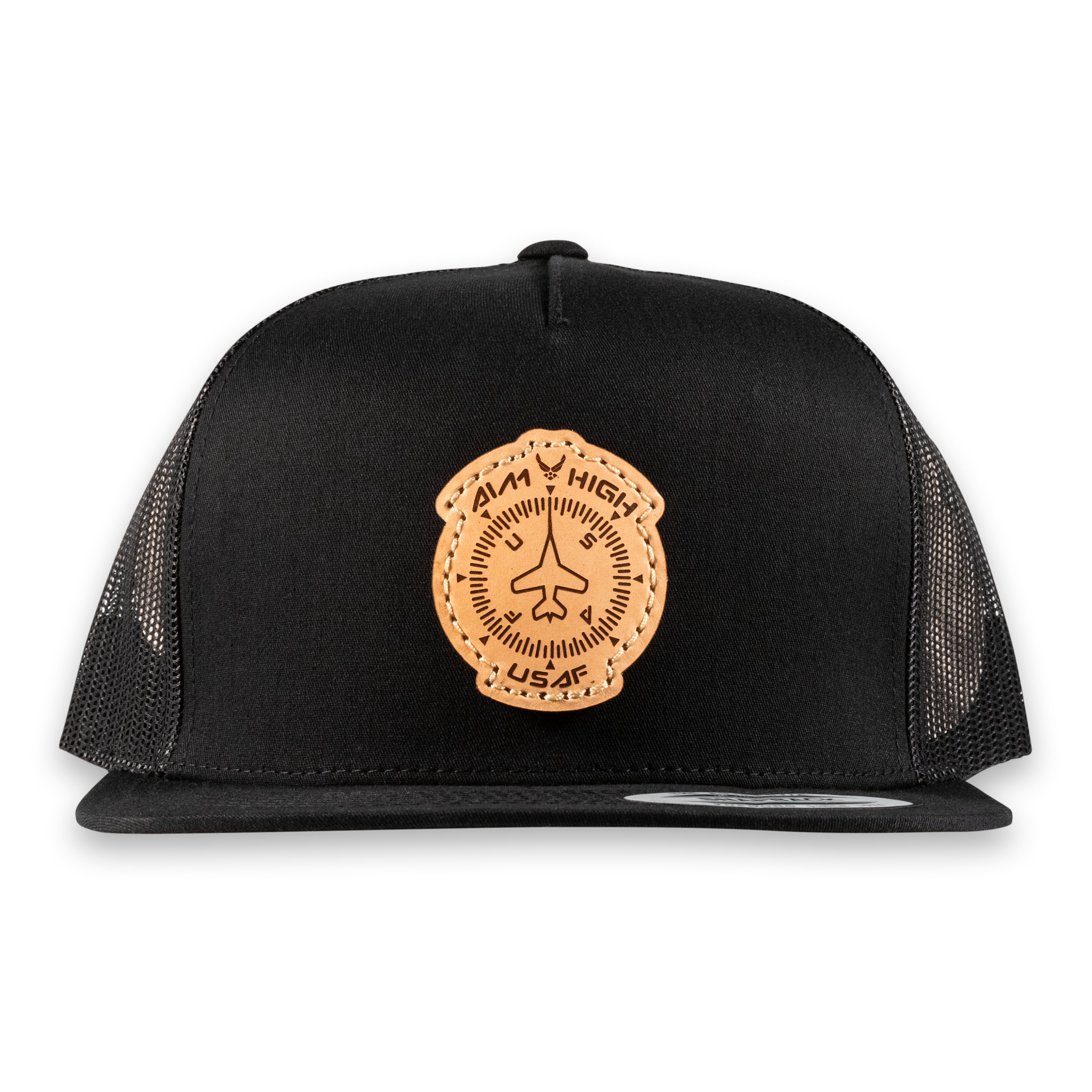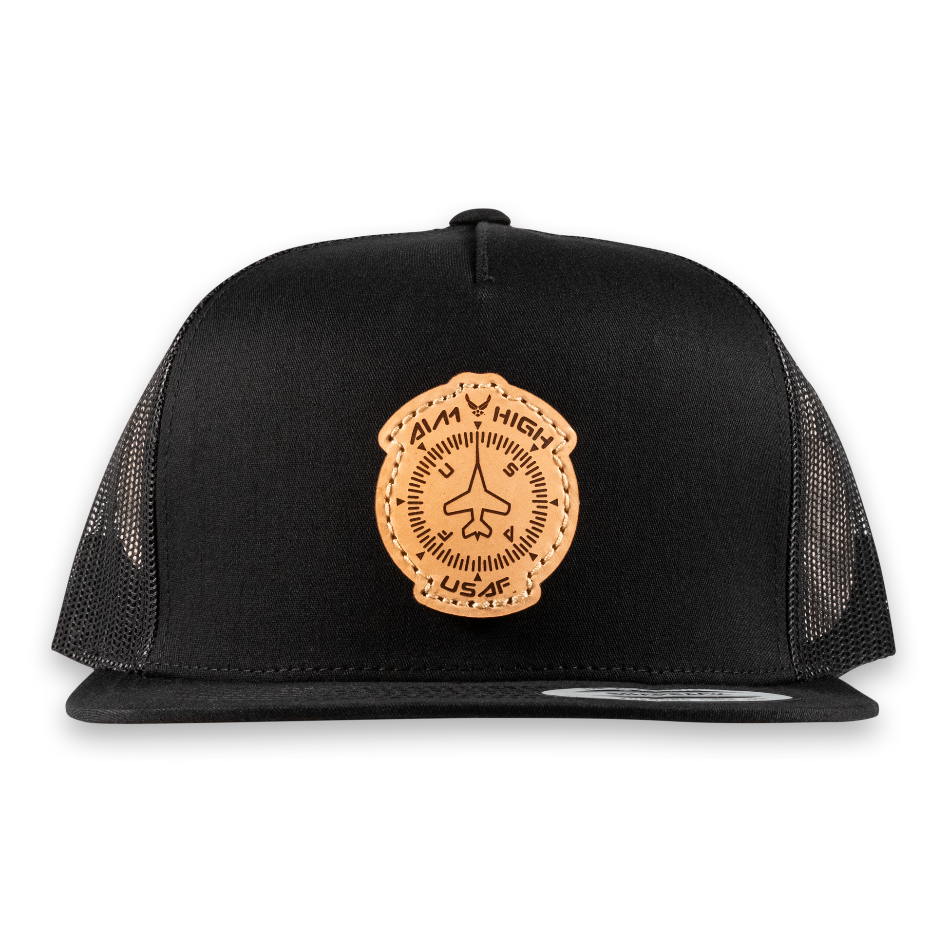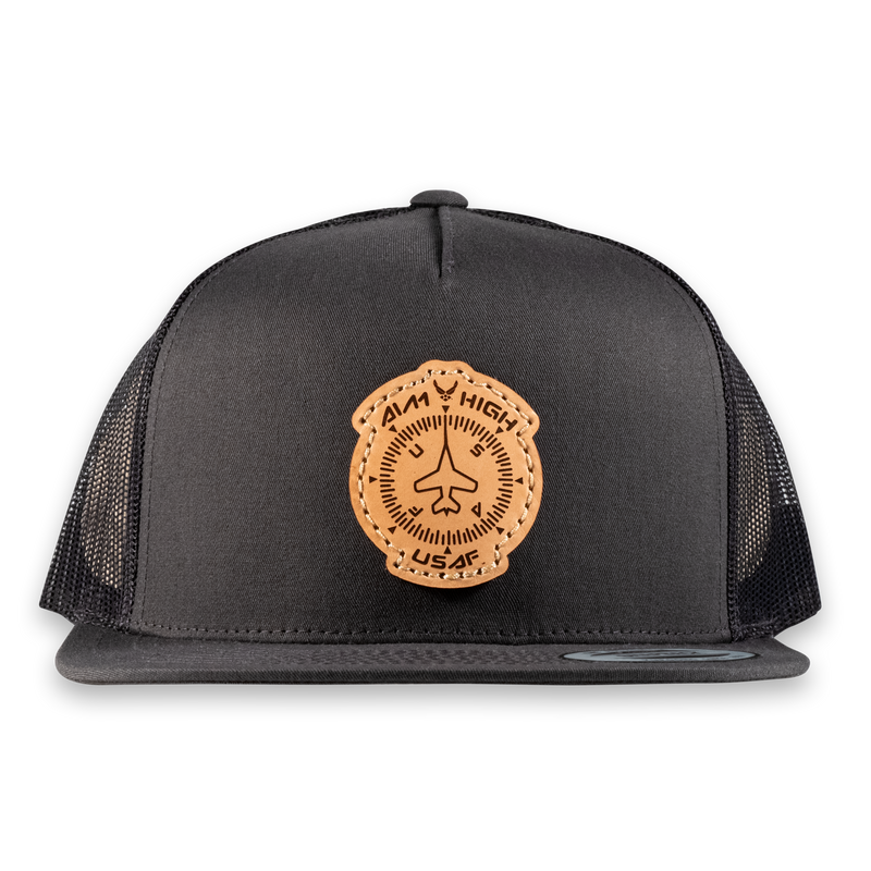 Aim High Compass Flat Bill Trucker Hat- Officially Licensed Leather Patch Hat
