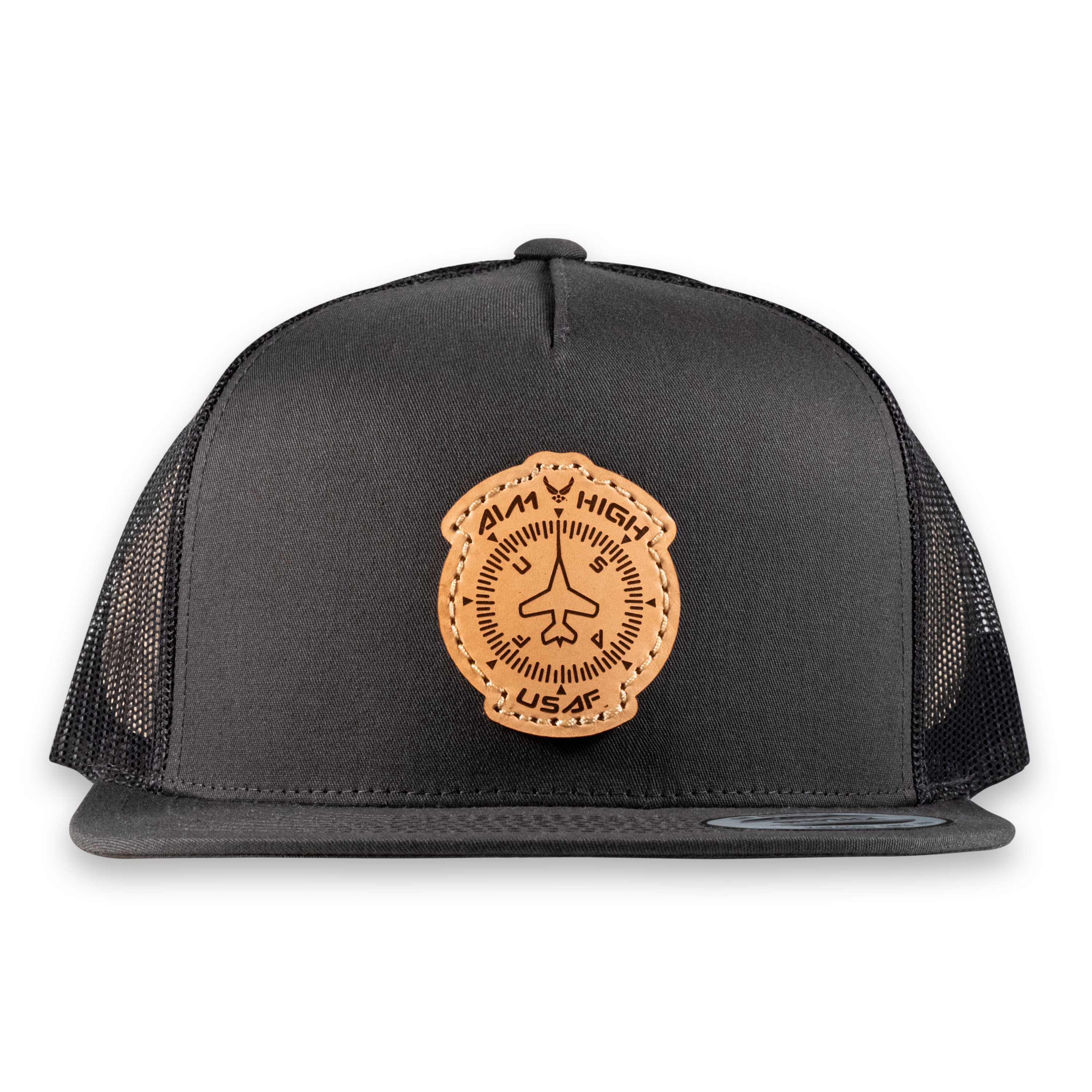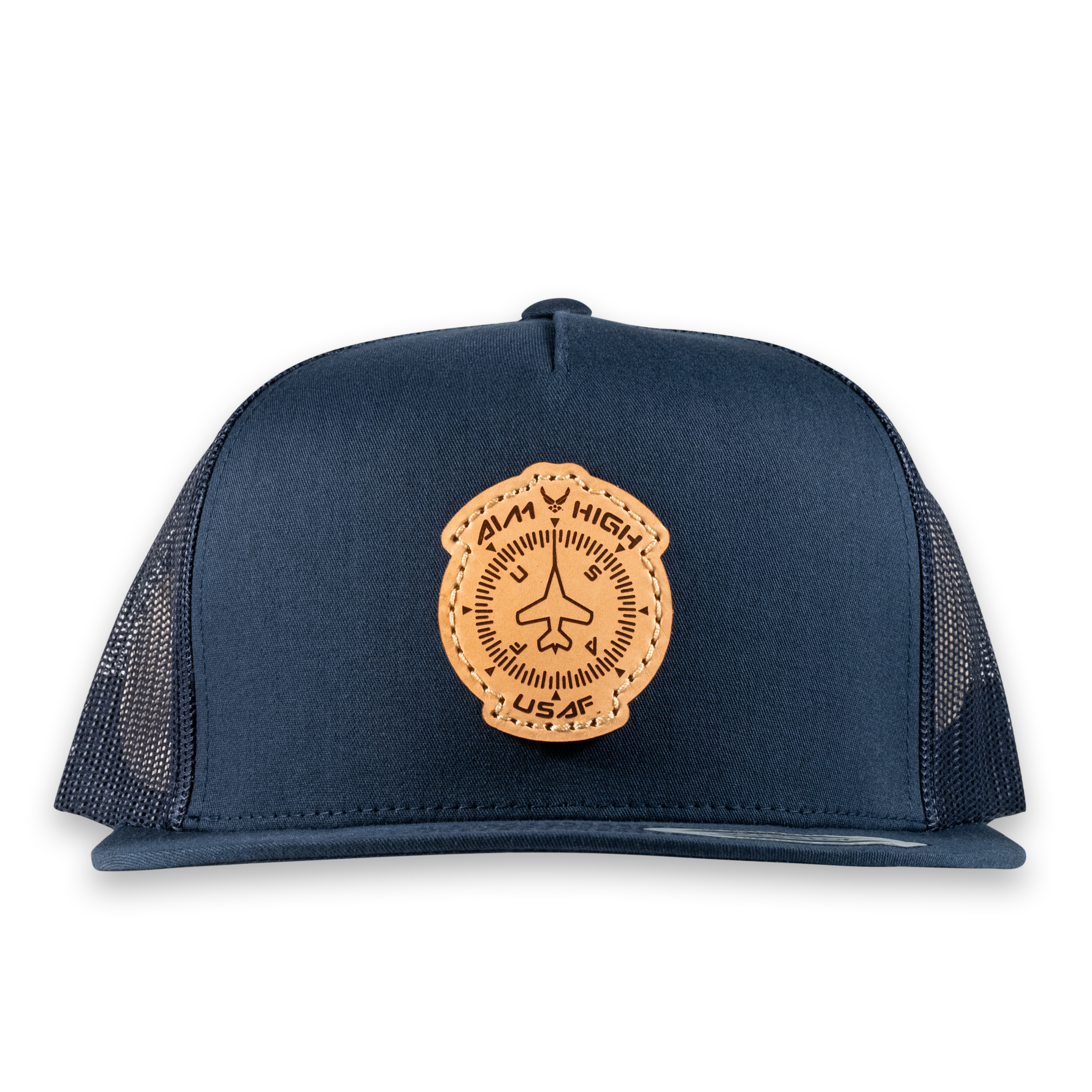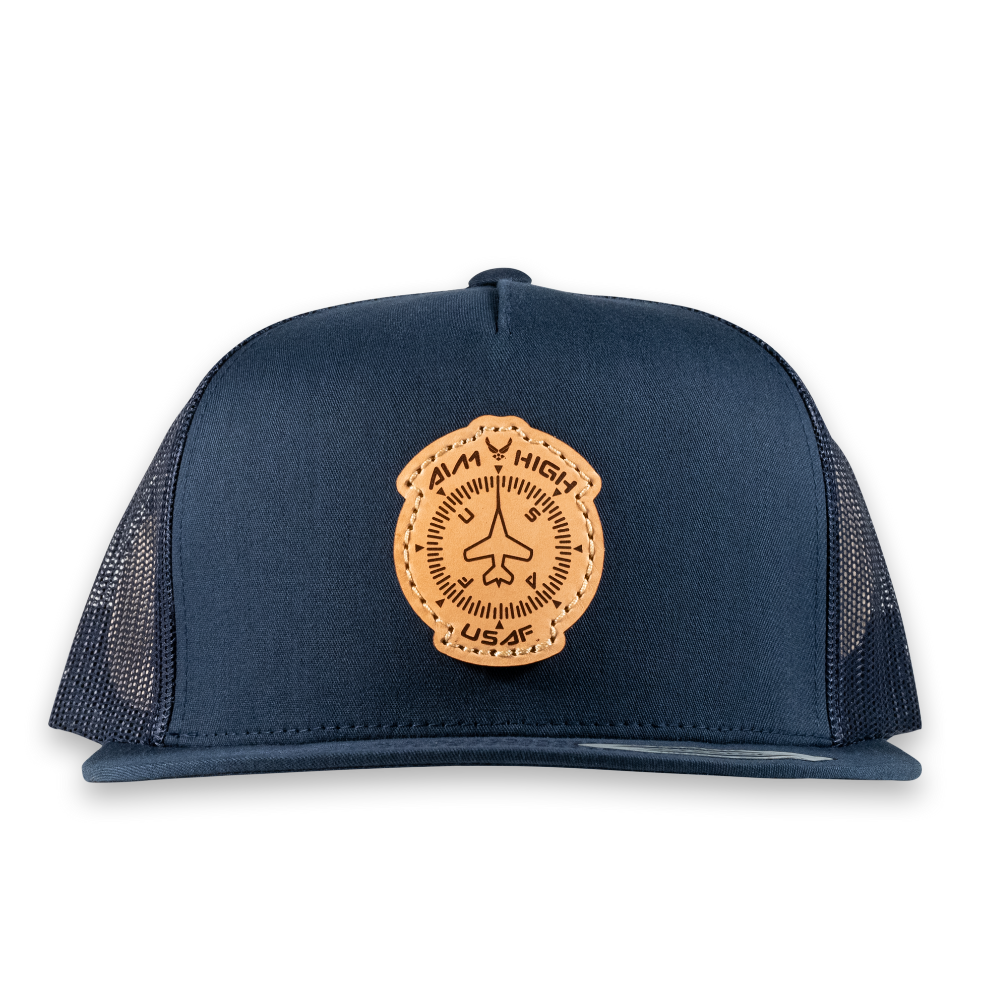 Aim High Compass Flat Bill Trucker Hat- Officially Licensed Leather Patch Hat