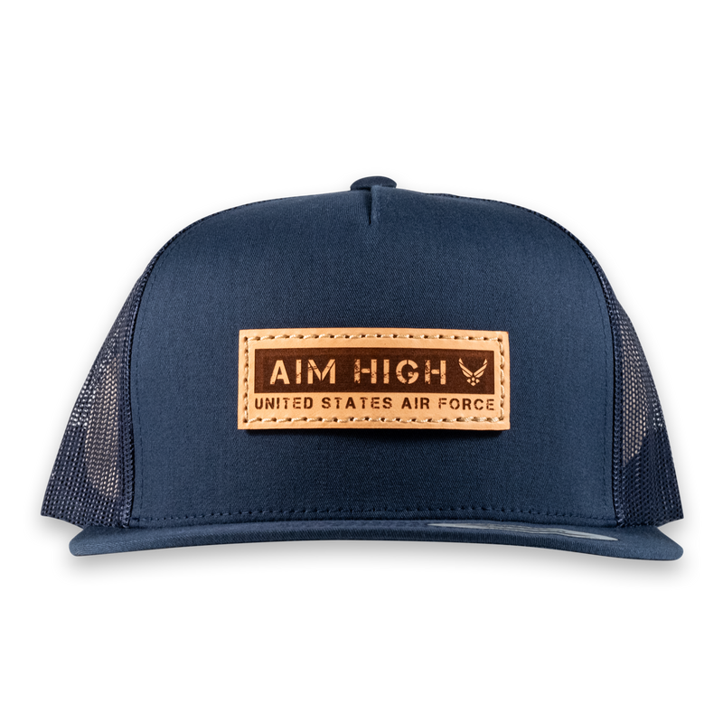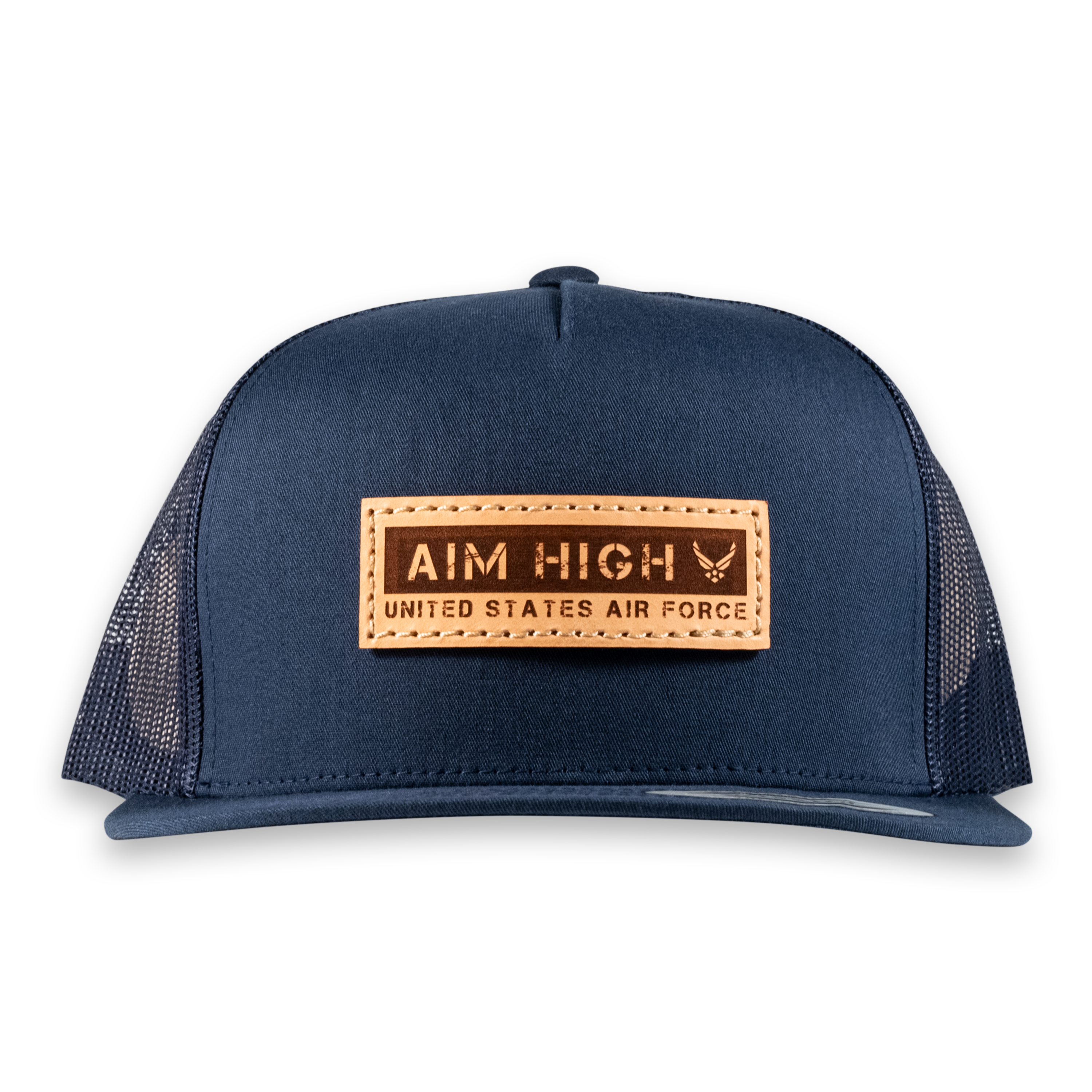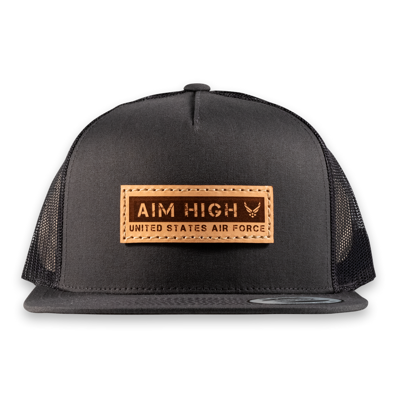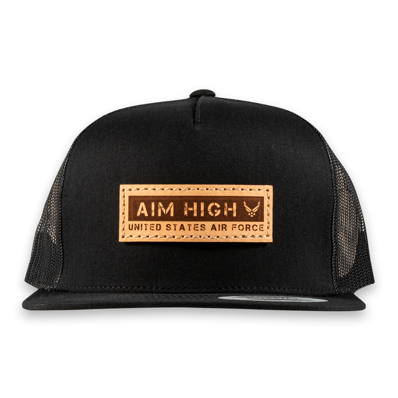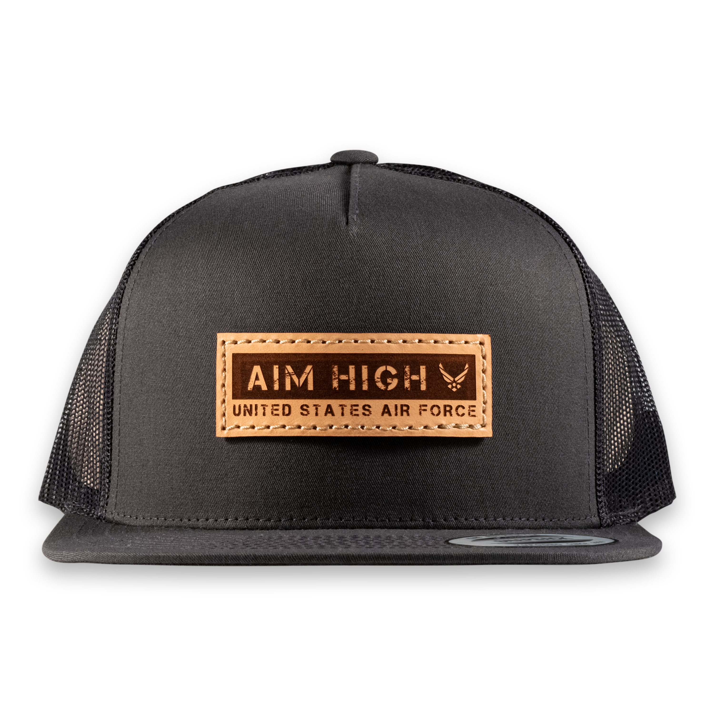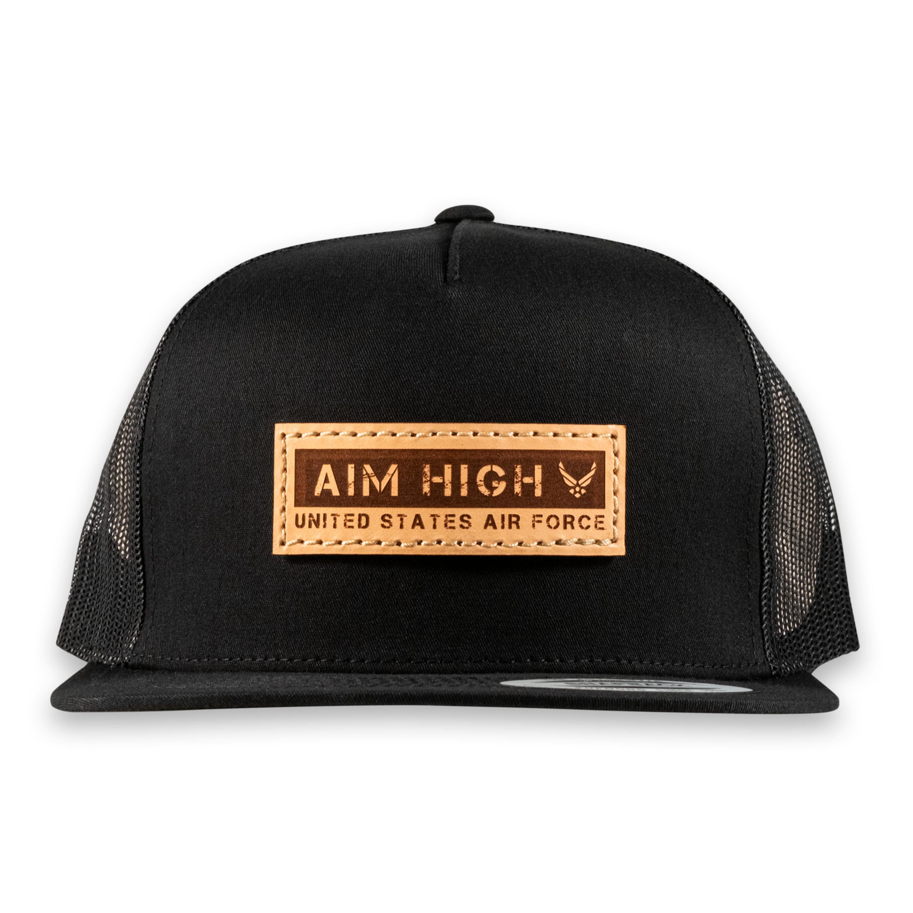 Aim High Rectangle Flat Bill Trucker Hat- Officially Licensed Leather Patch Hat