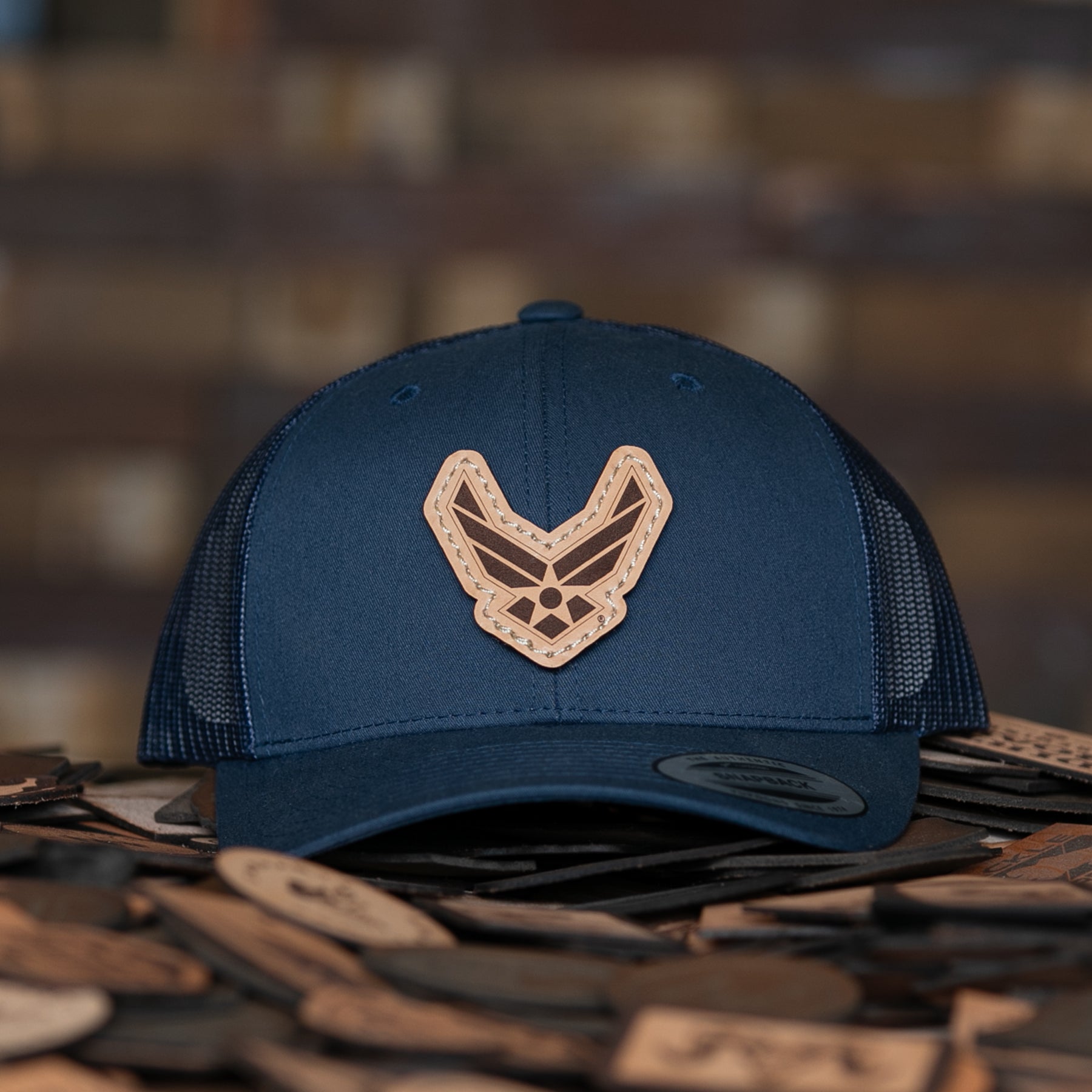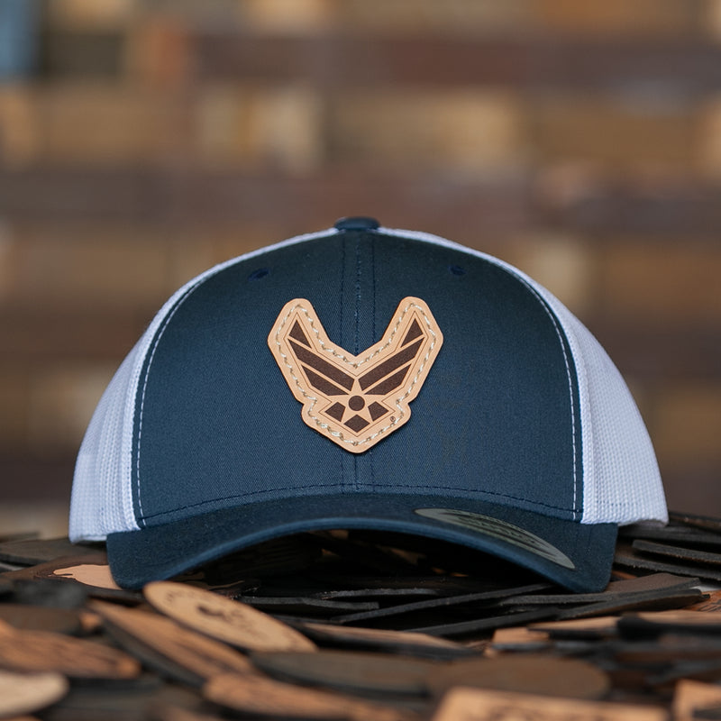 U.S. Air Force Emblem Trucker Hat- Officially Licensed Leather Patch Hat