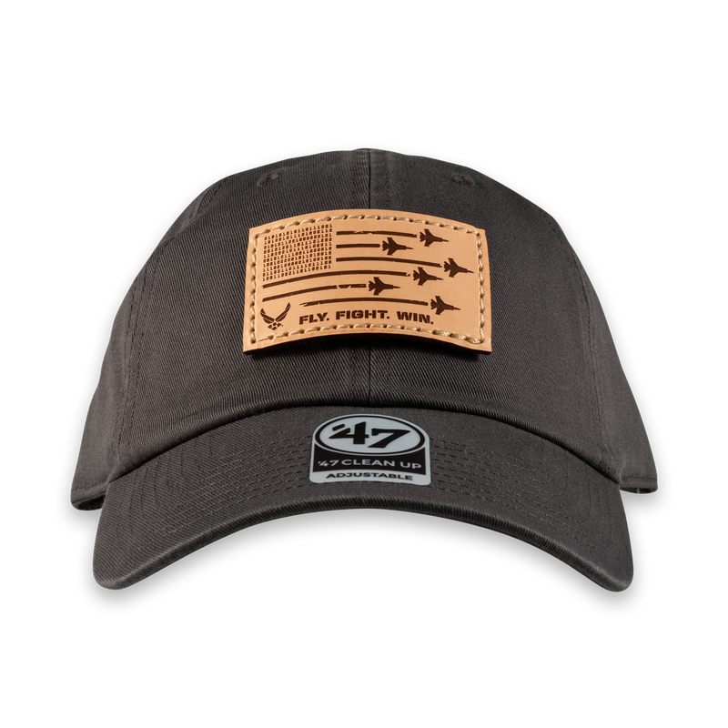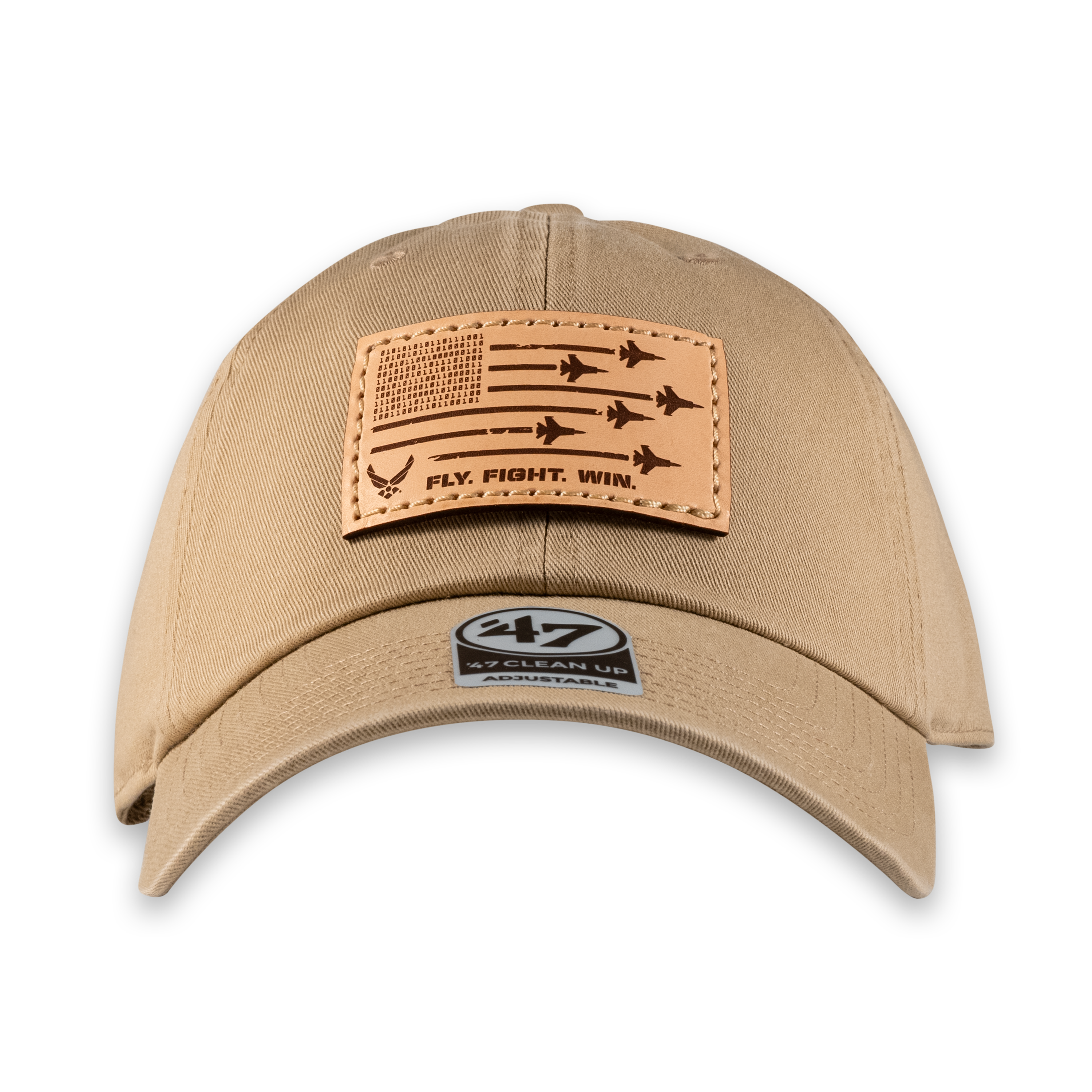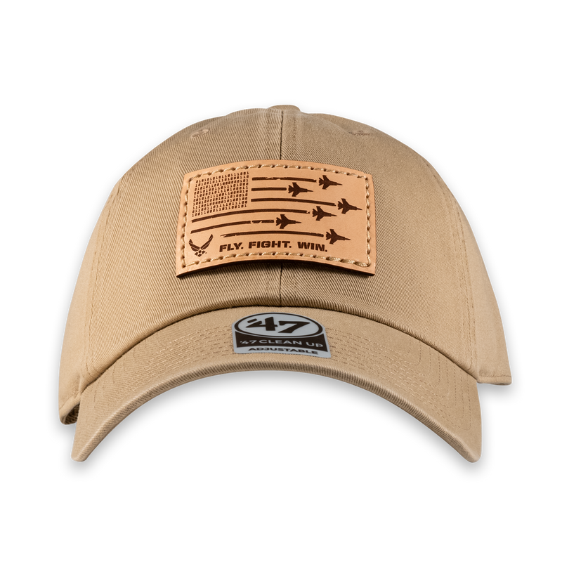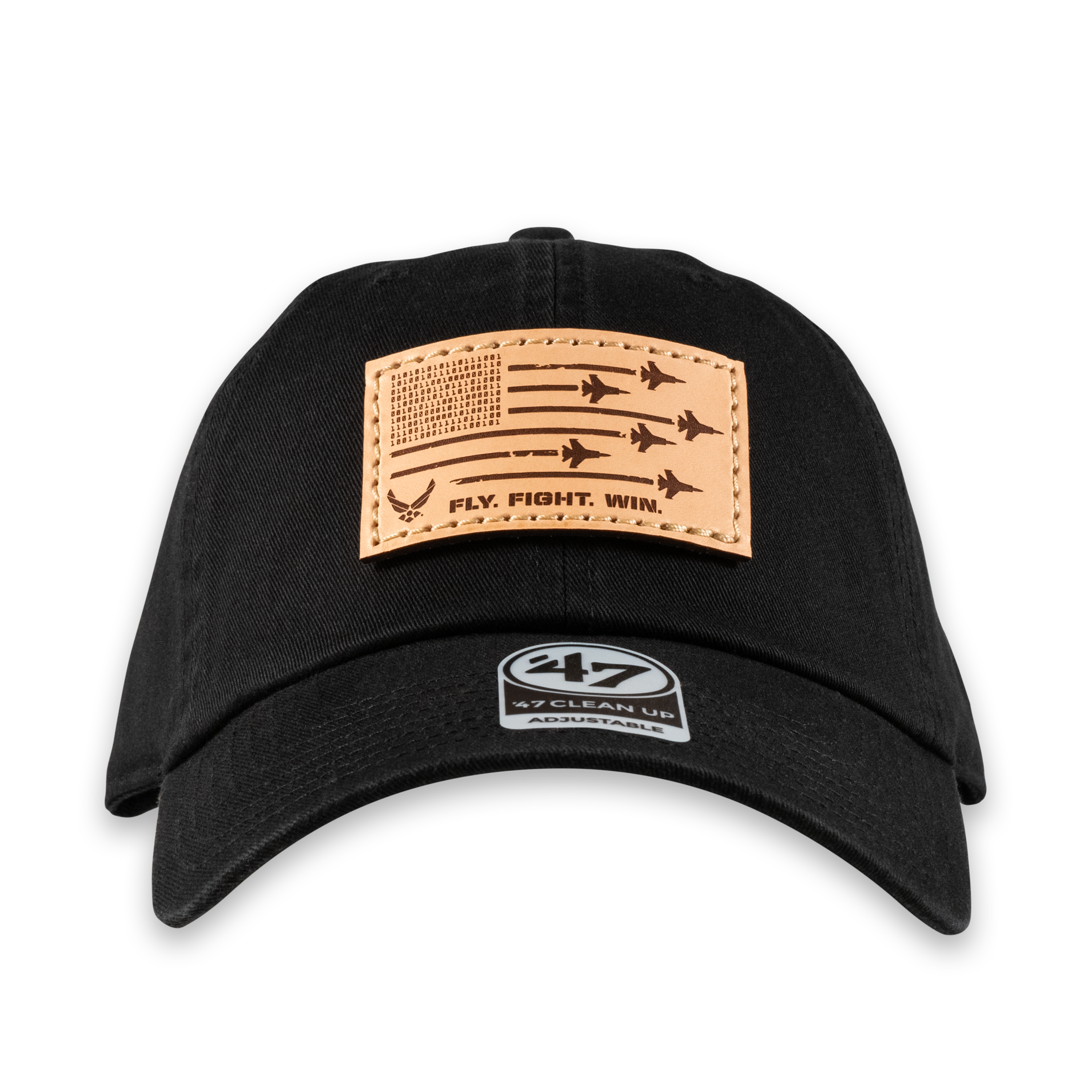 Hand Stitched Fly Fight Win Custom Leather Patch Hat. Officially licensed by the U.S. Air Force.