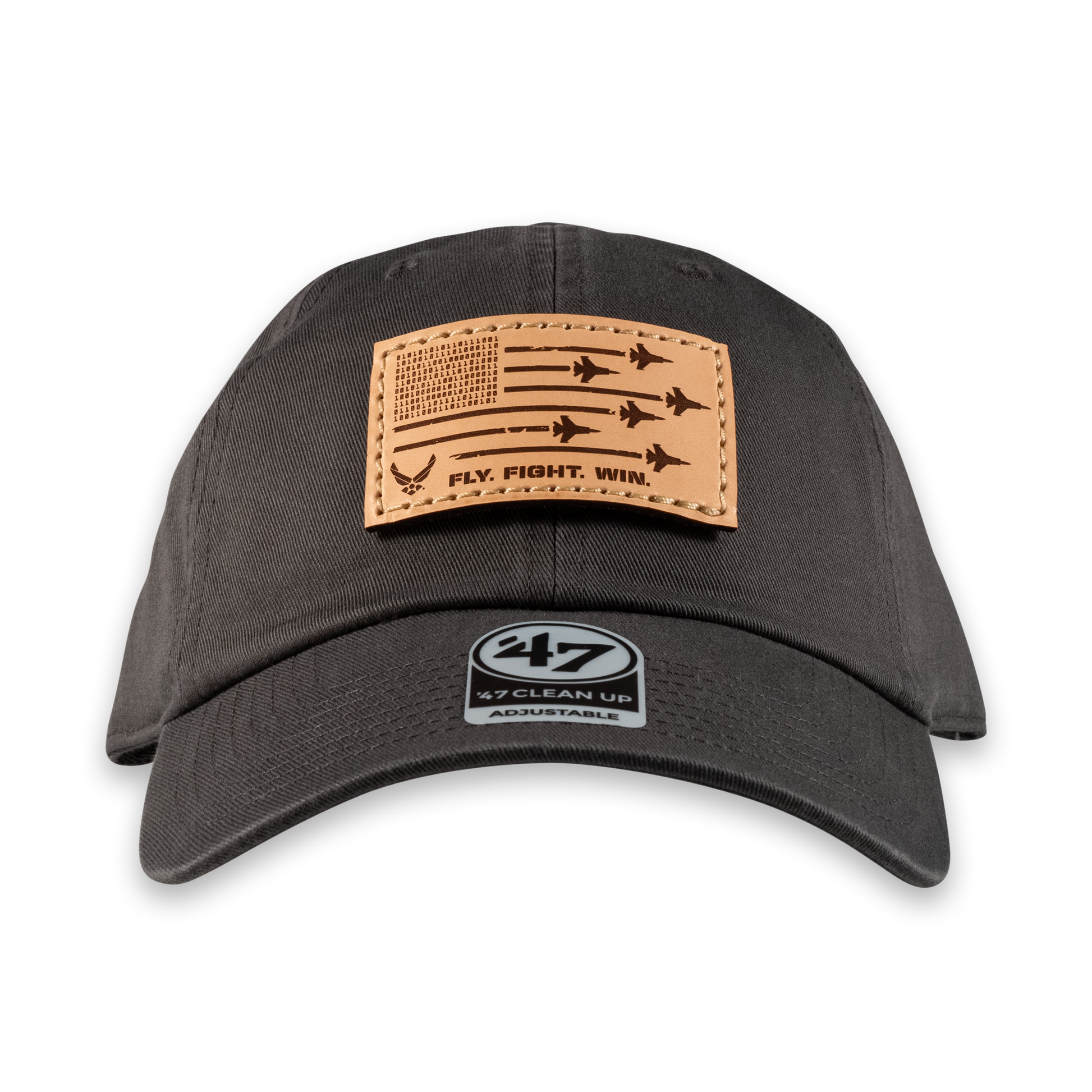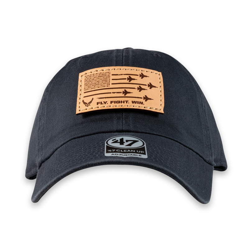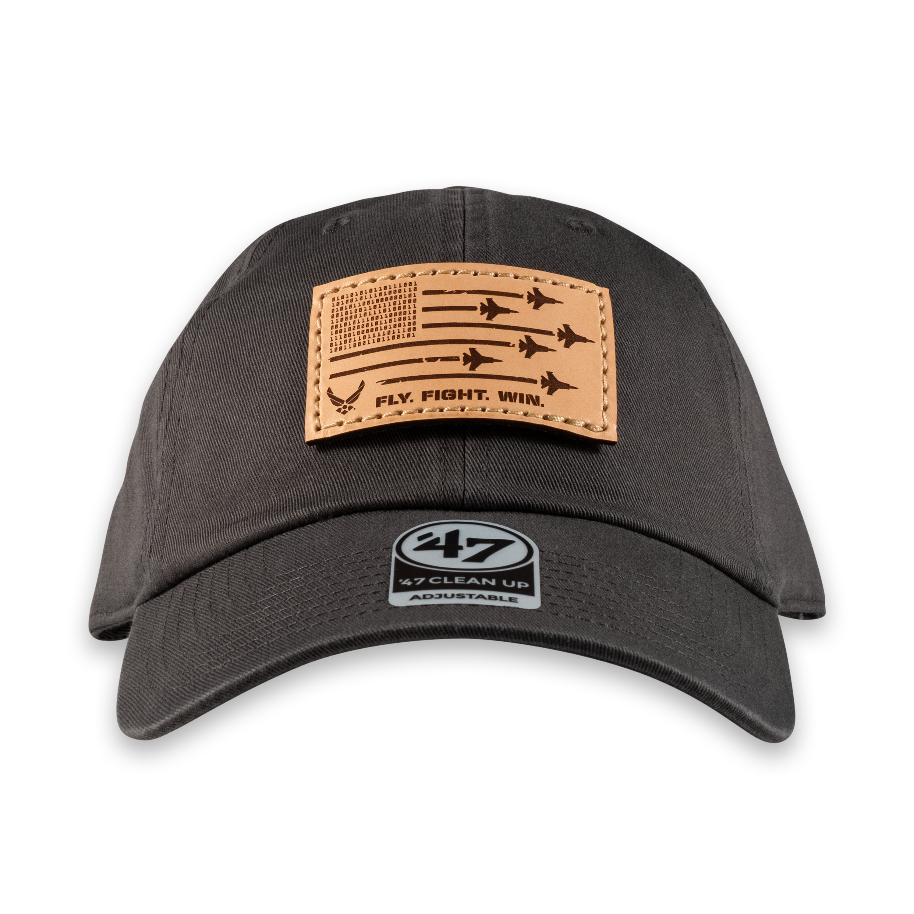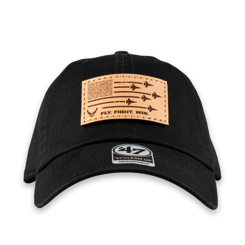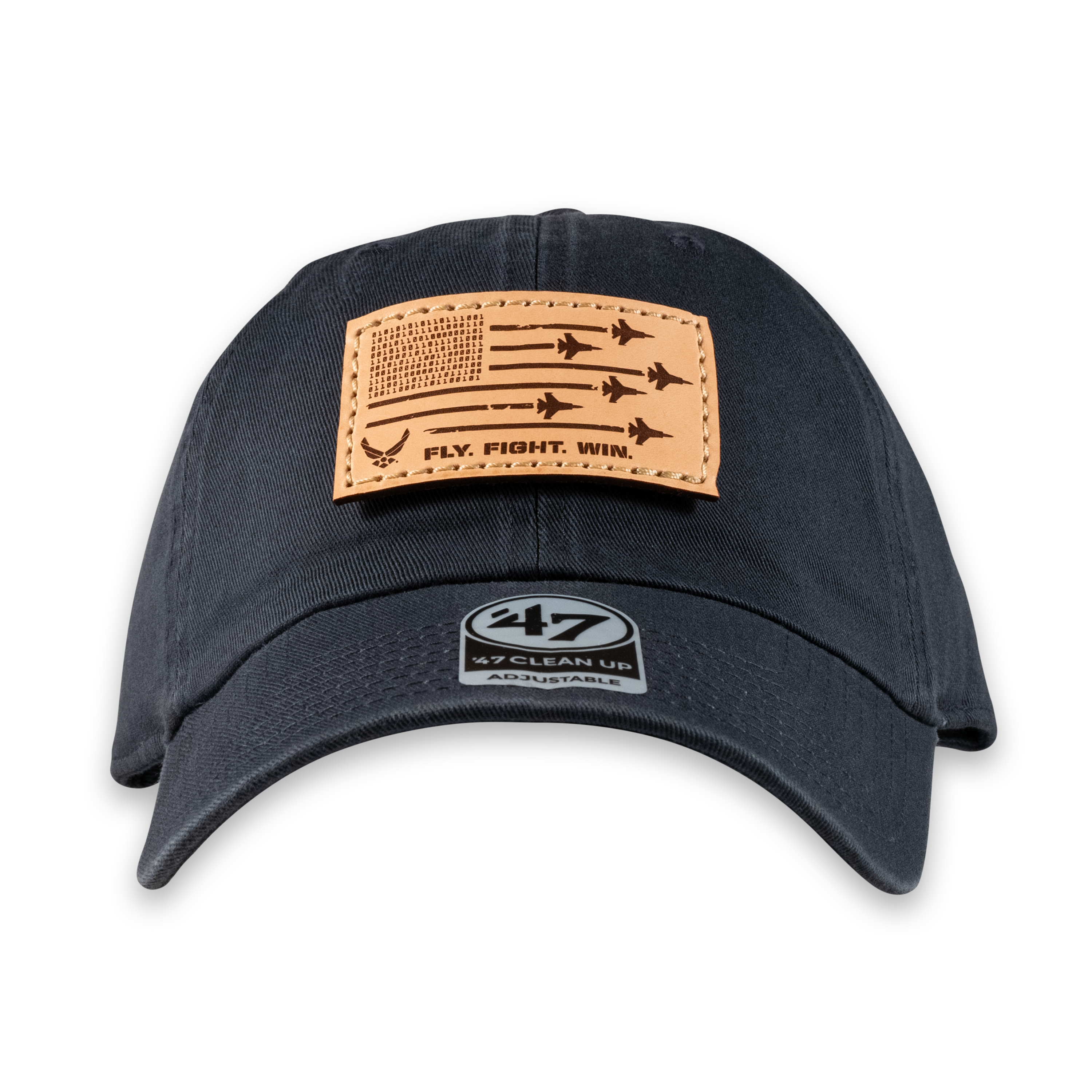 Hand Stitched Fly Fight Win Custom Leather Patch Hat. Officially licensed by the U.S. Air Force.