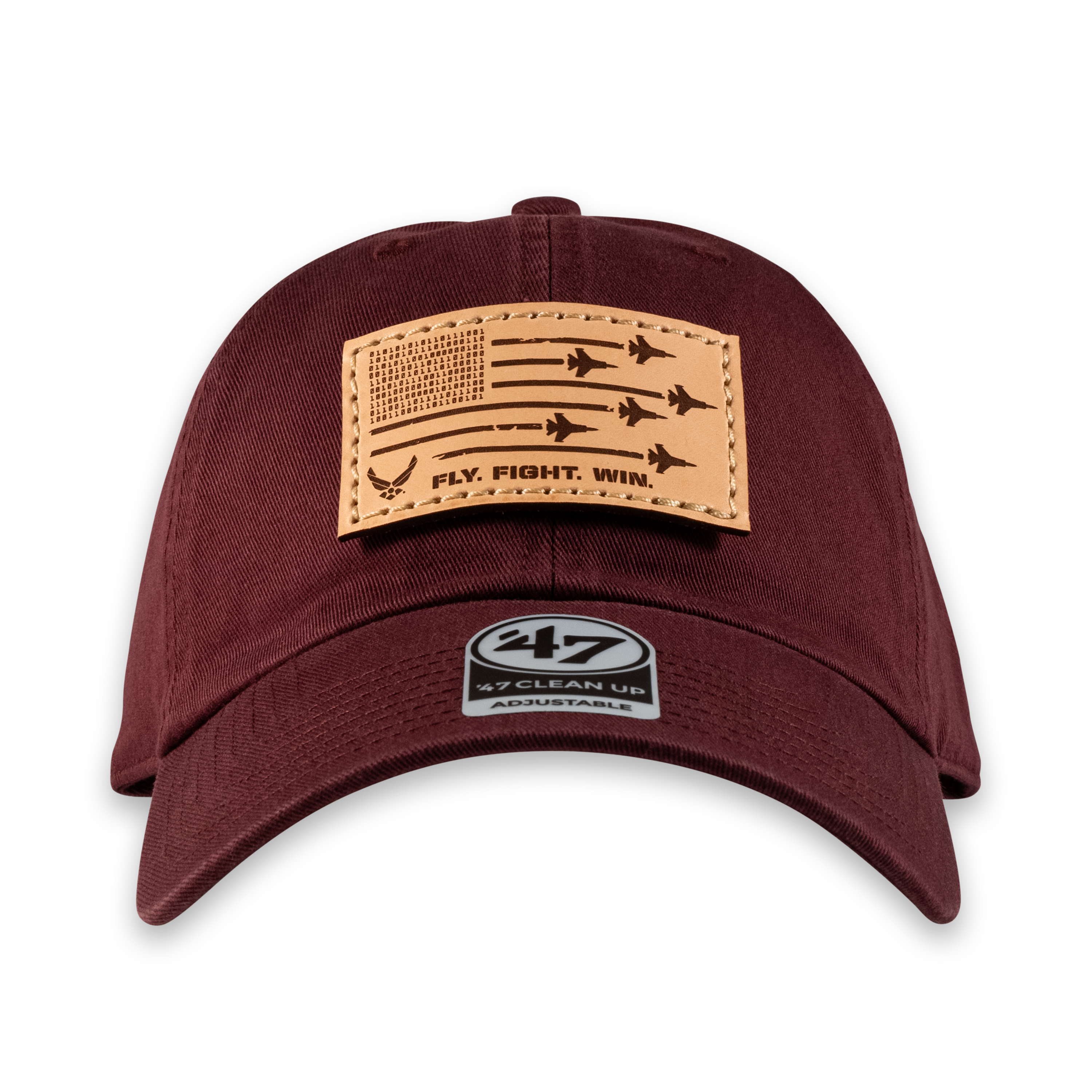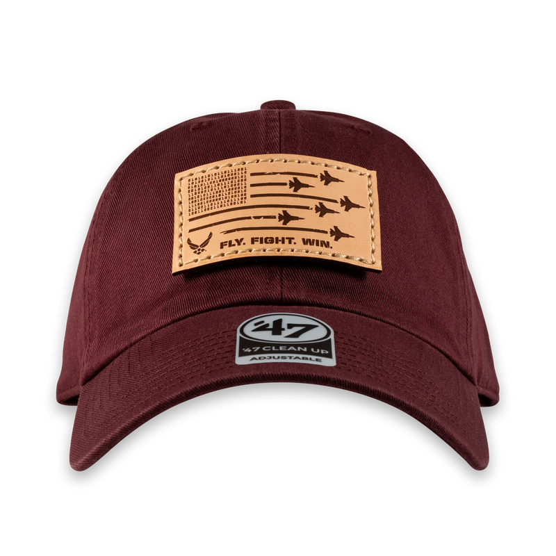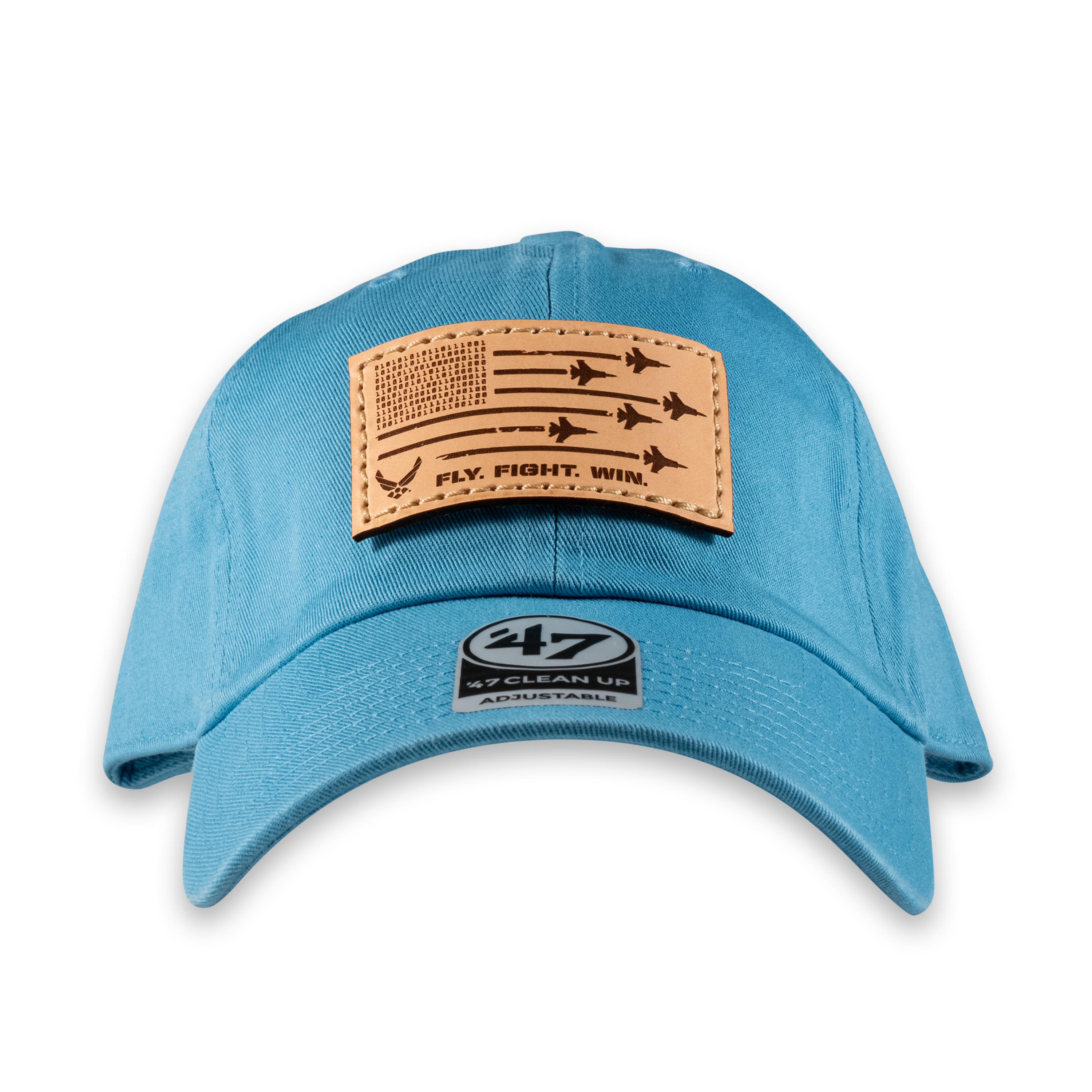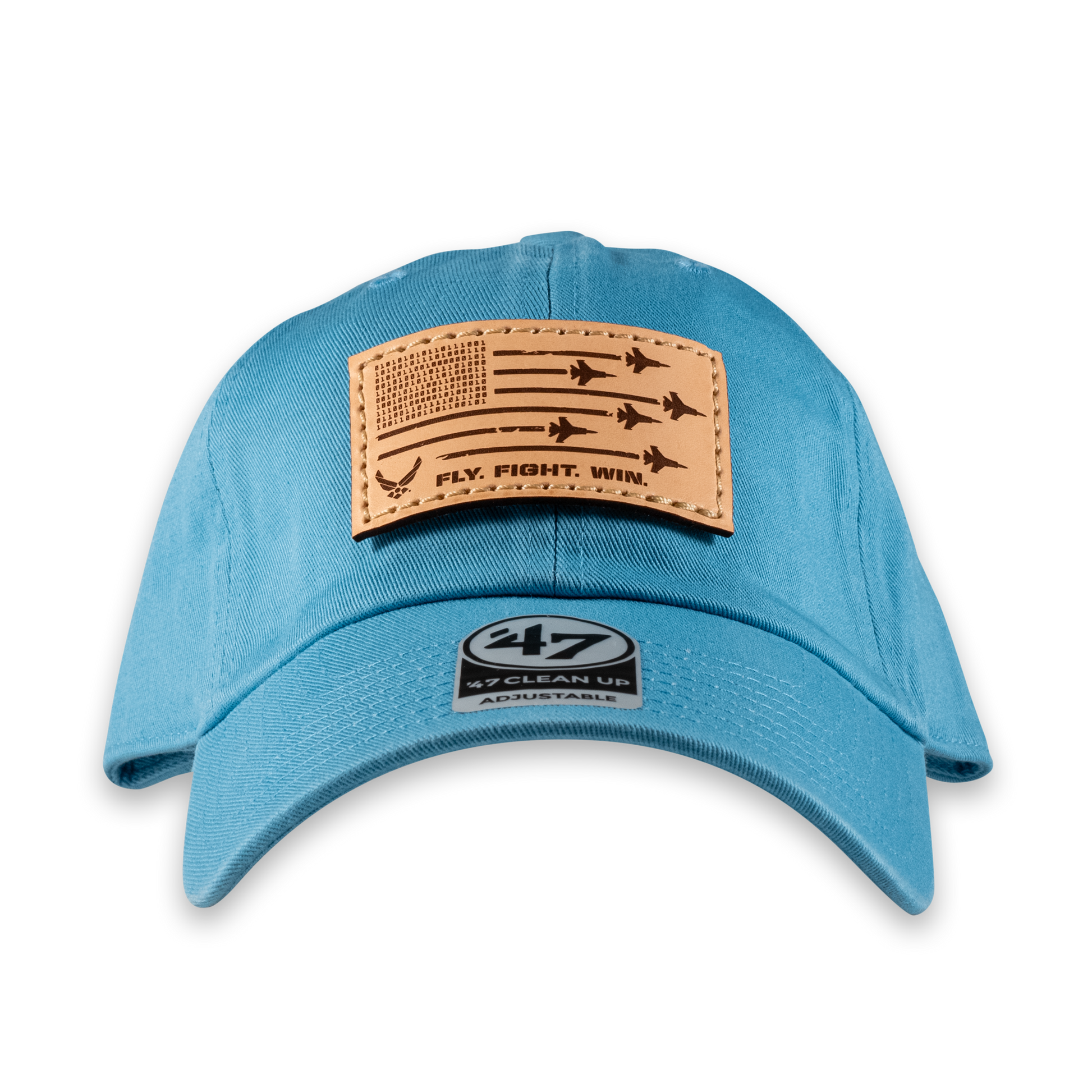 Hand Stitched Fly Fight Win Custom Leather Patch Hat. Officially licensed by the U.S. Air Force.
