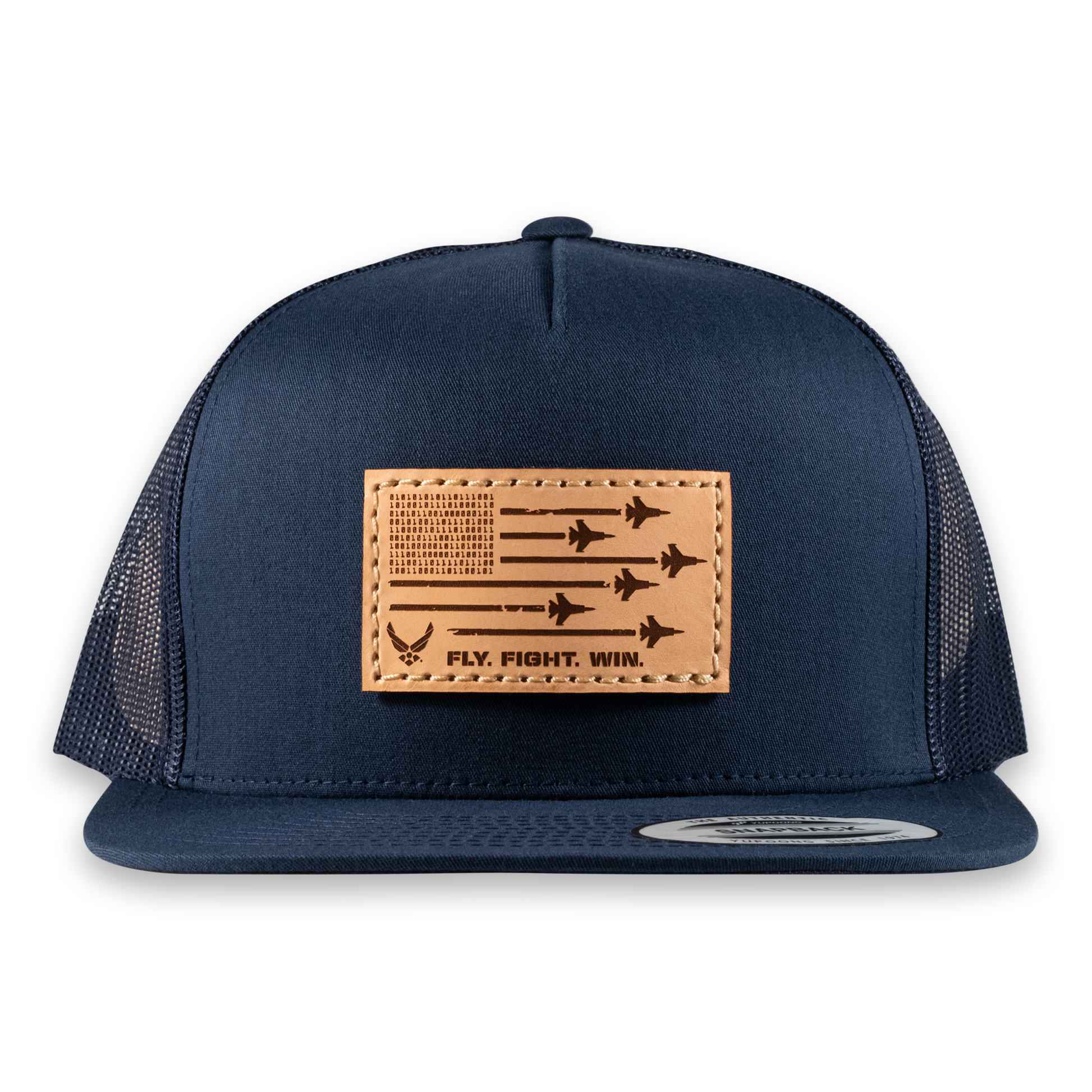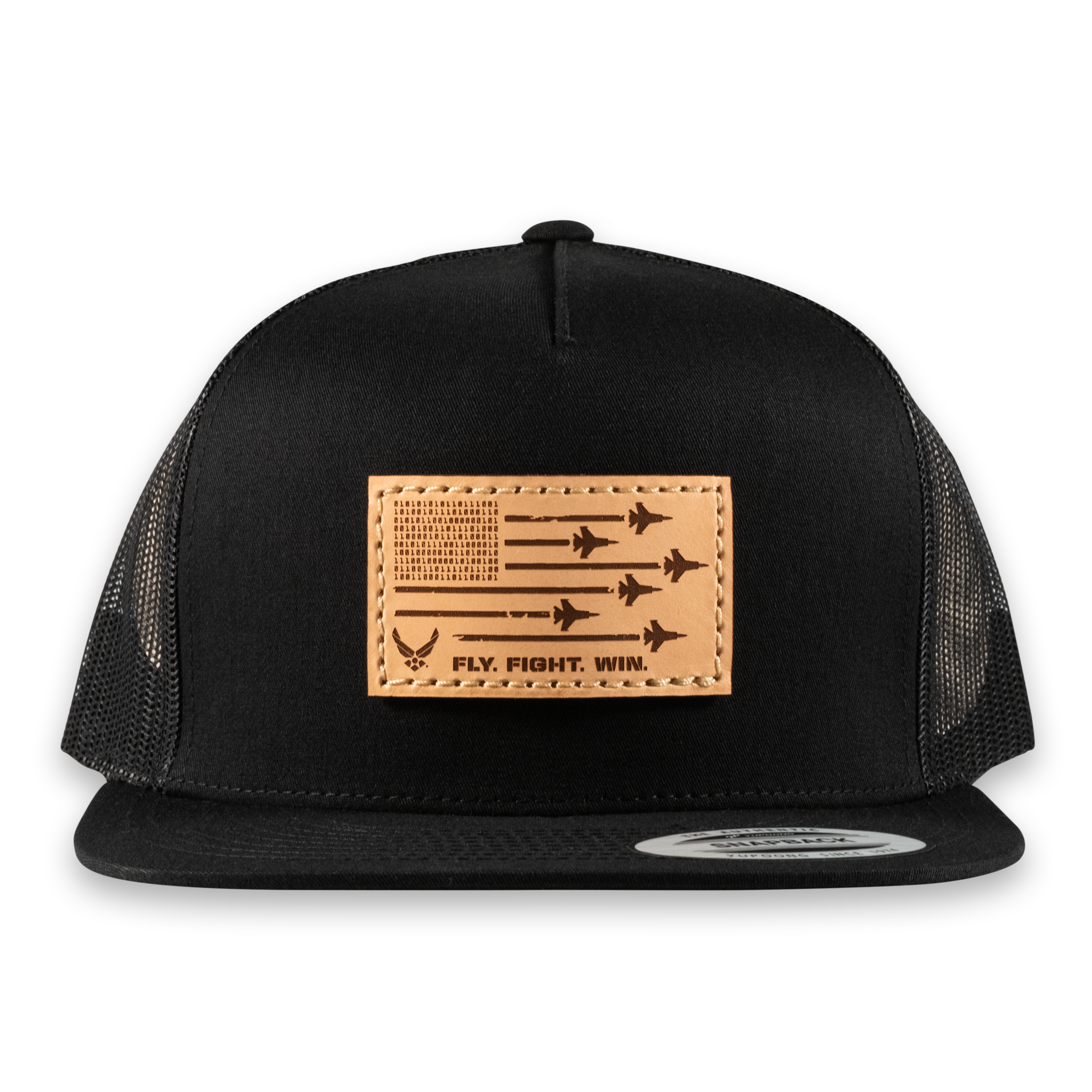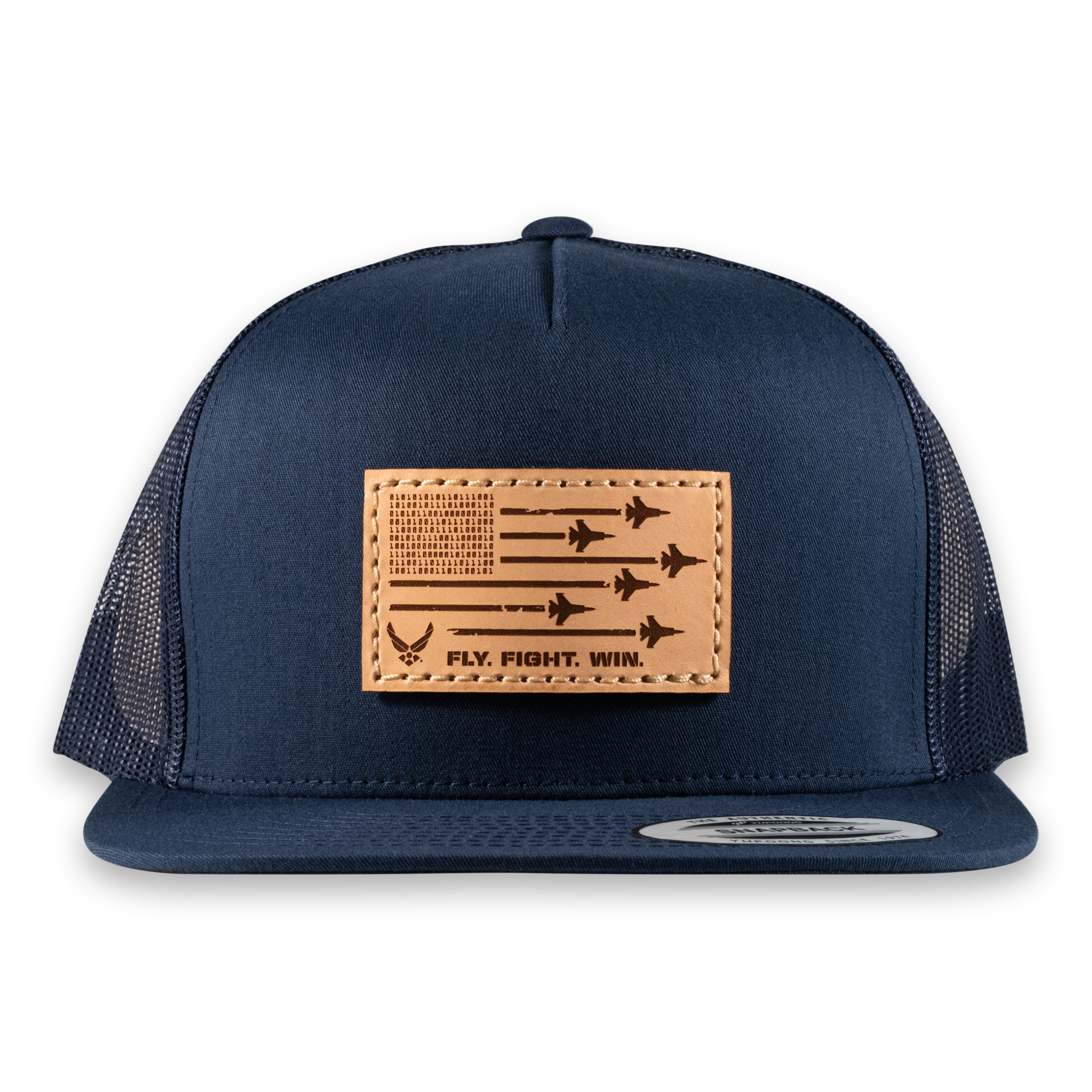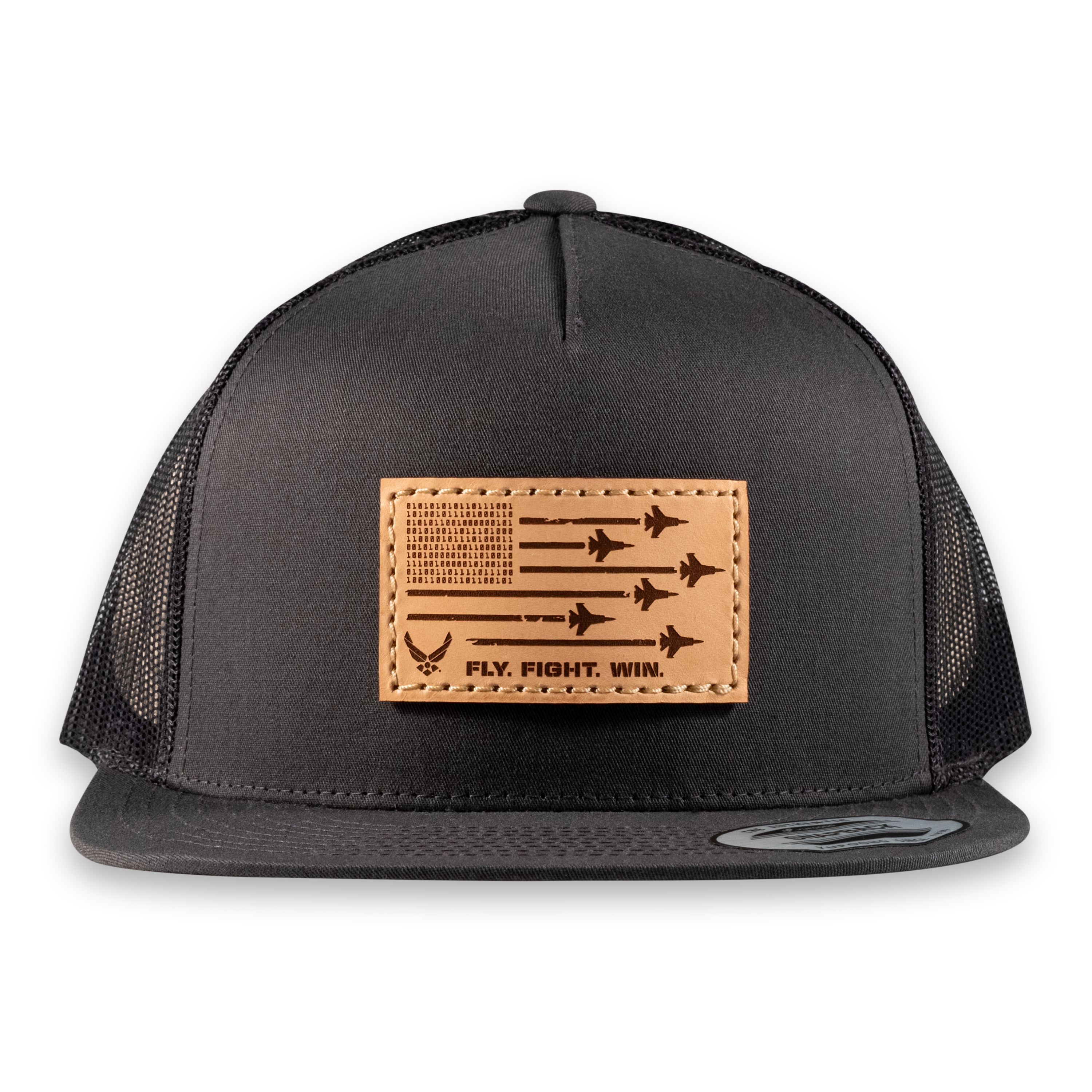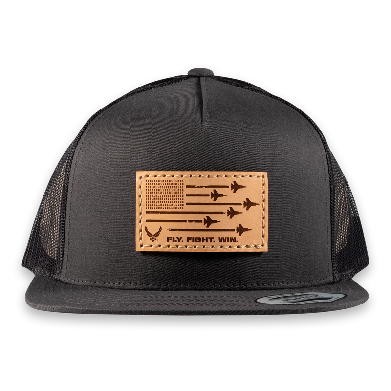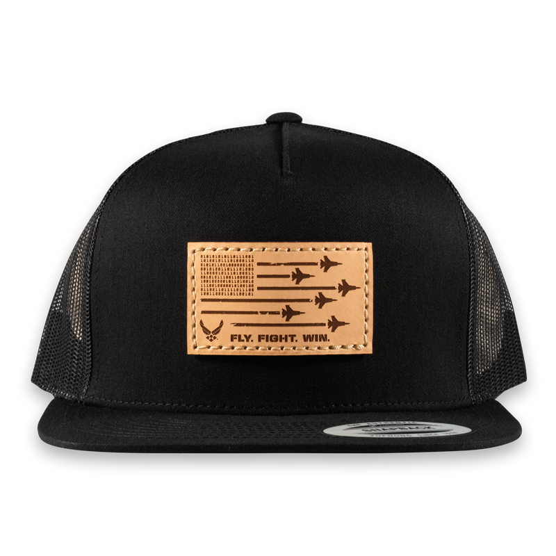 Hand Stitched Fly Fight Win Custom Leather Patch Hat. Officially licensed by the US Air Force.