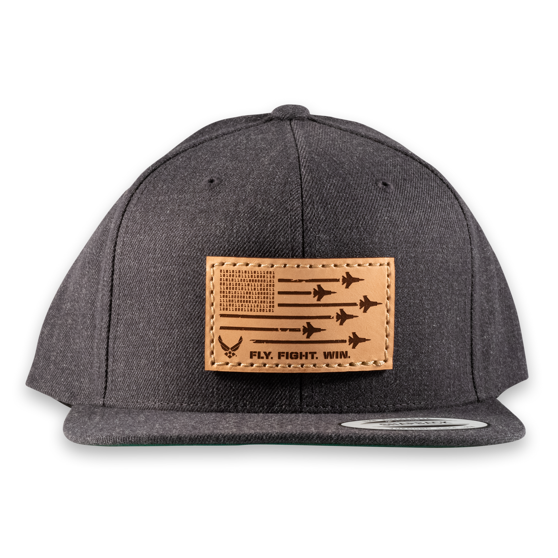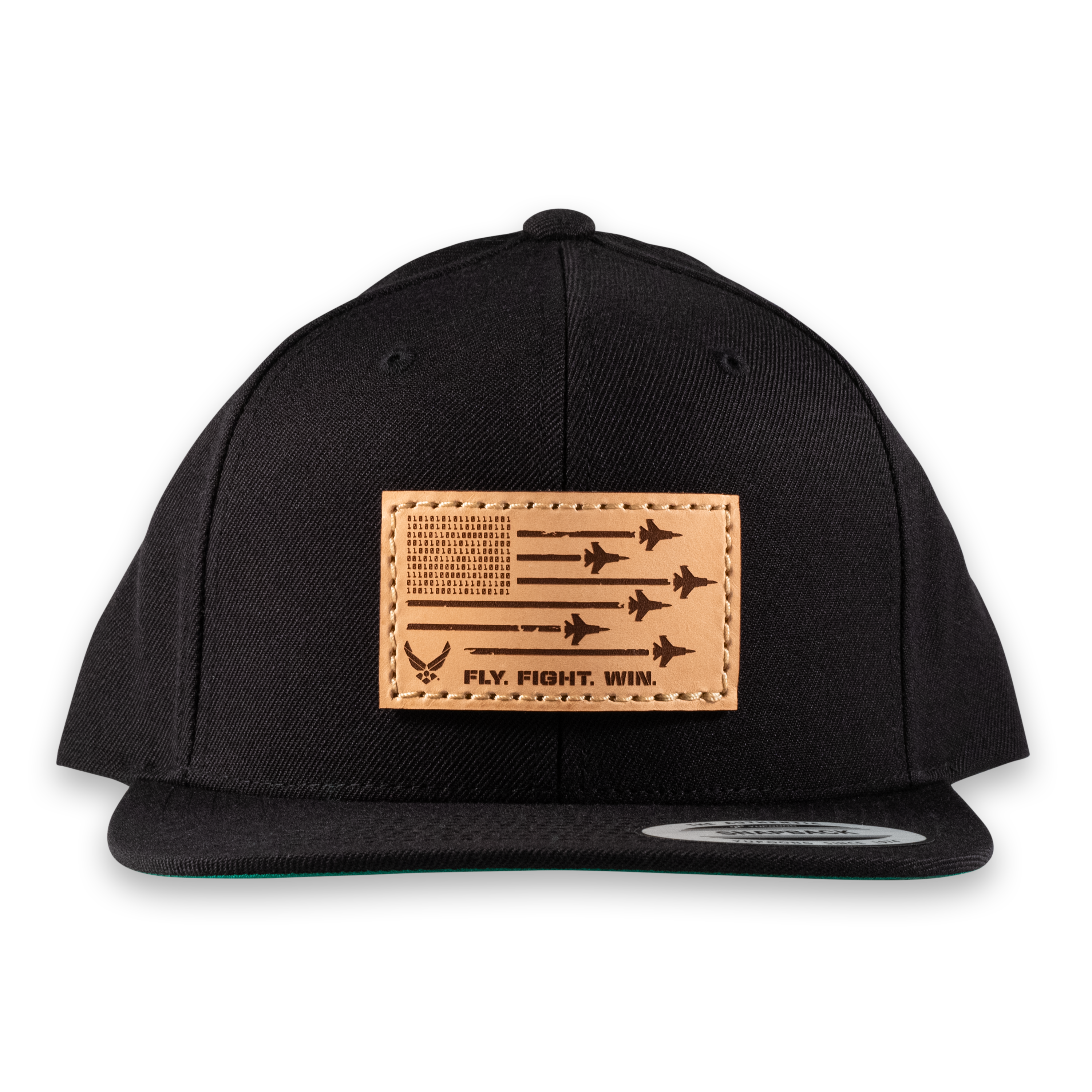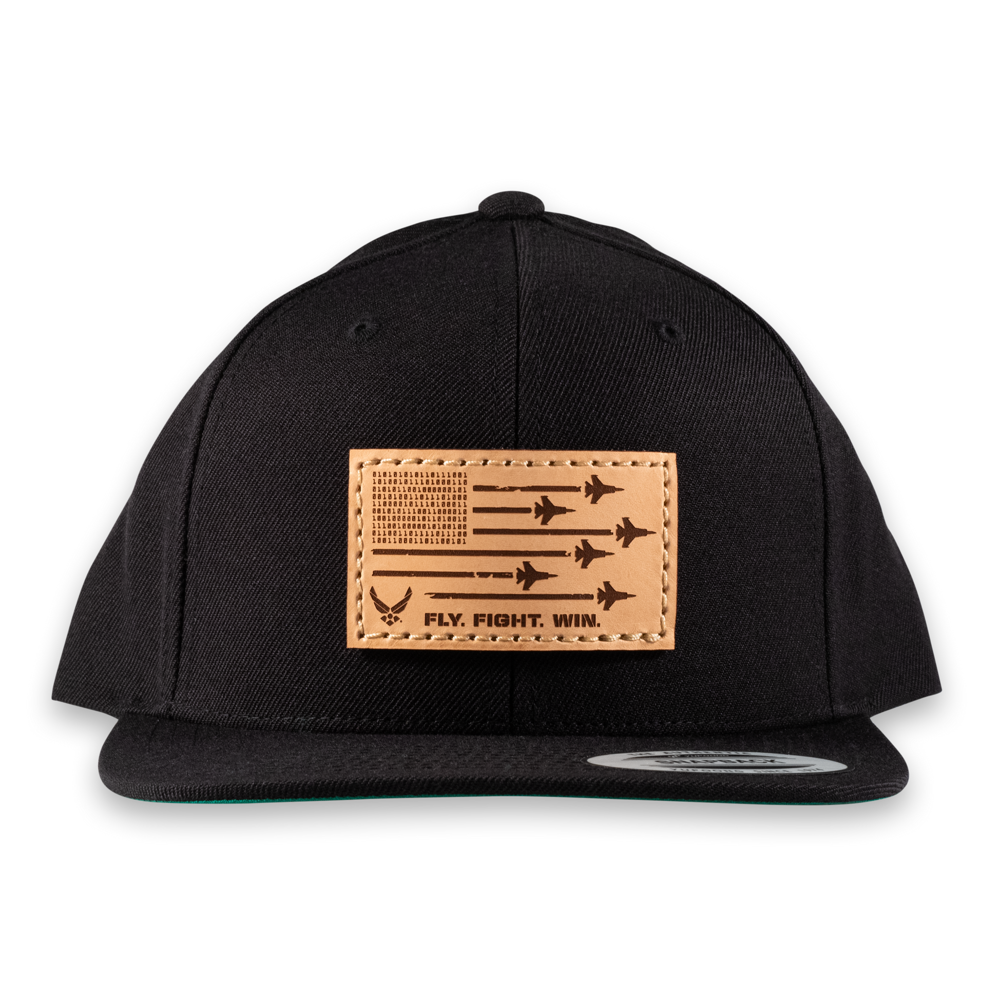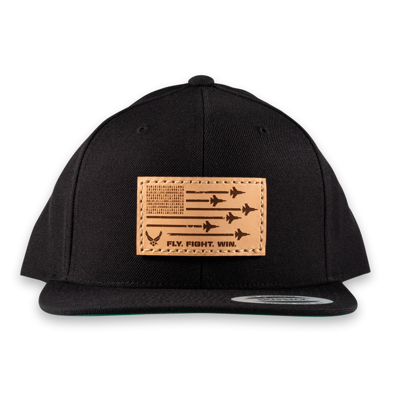 Hand Stitched Fly Fight Win Custom Leather Patch Hat. Officially licensed by the U.S. Air Force.