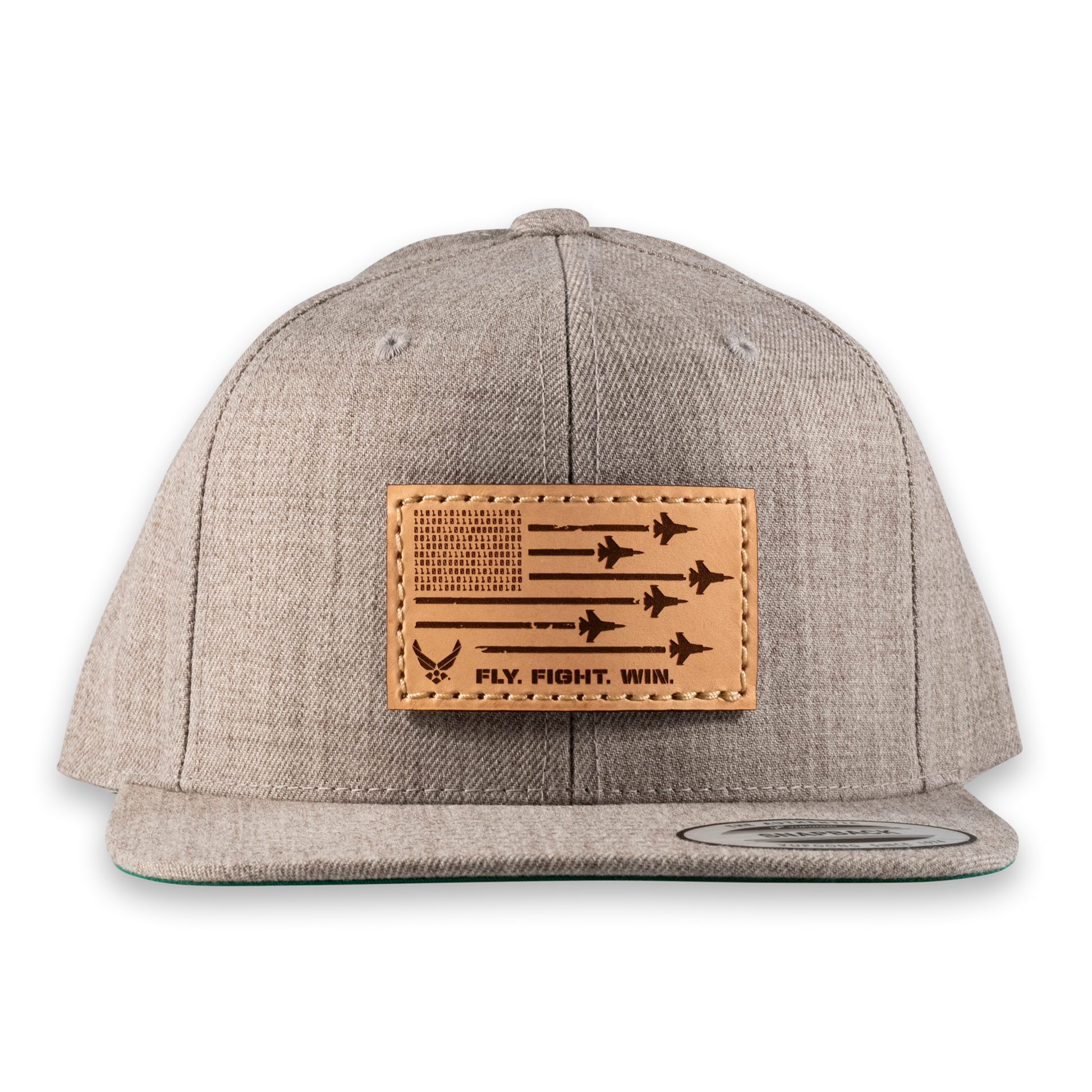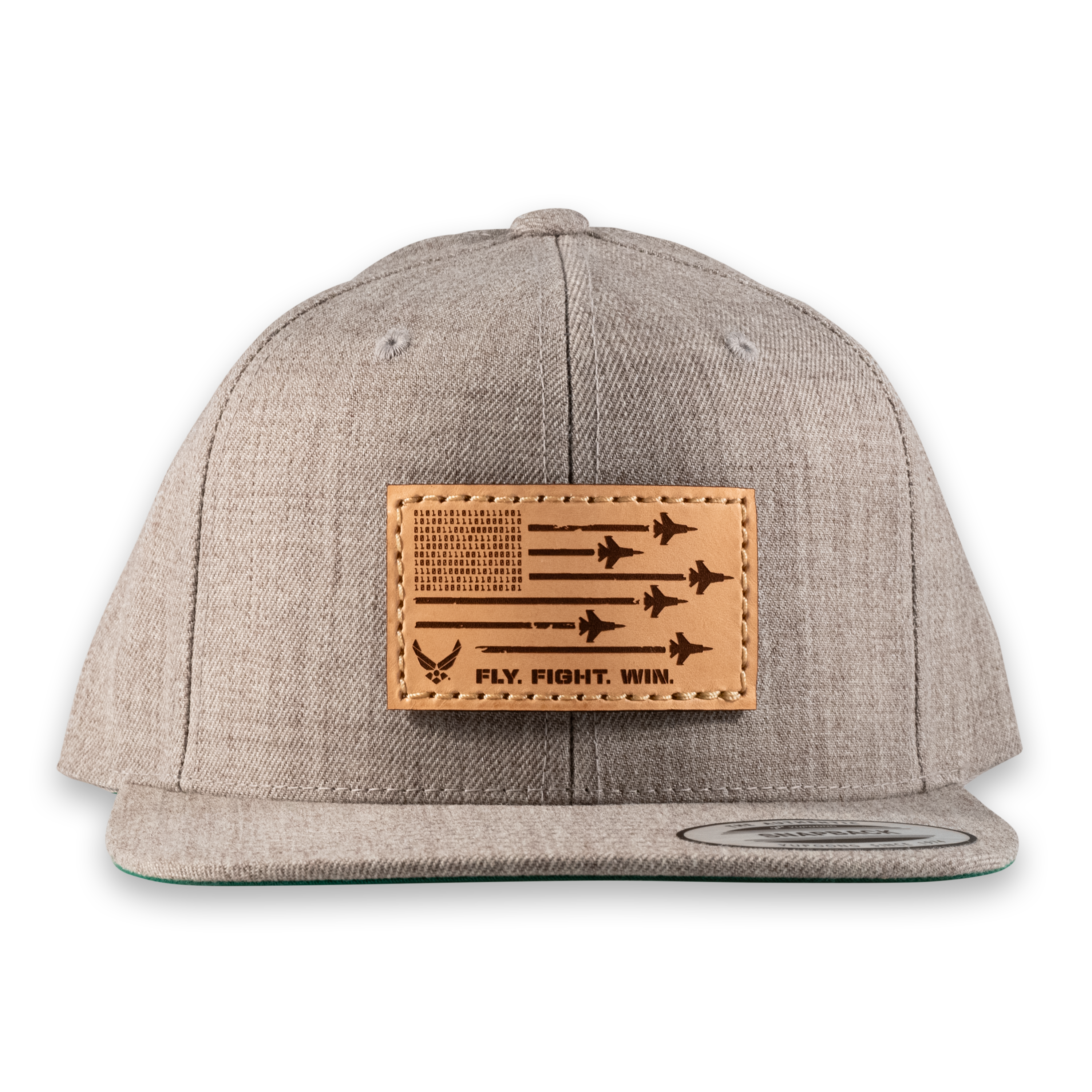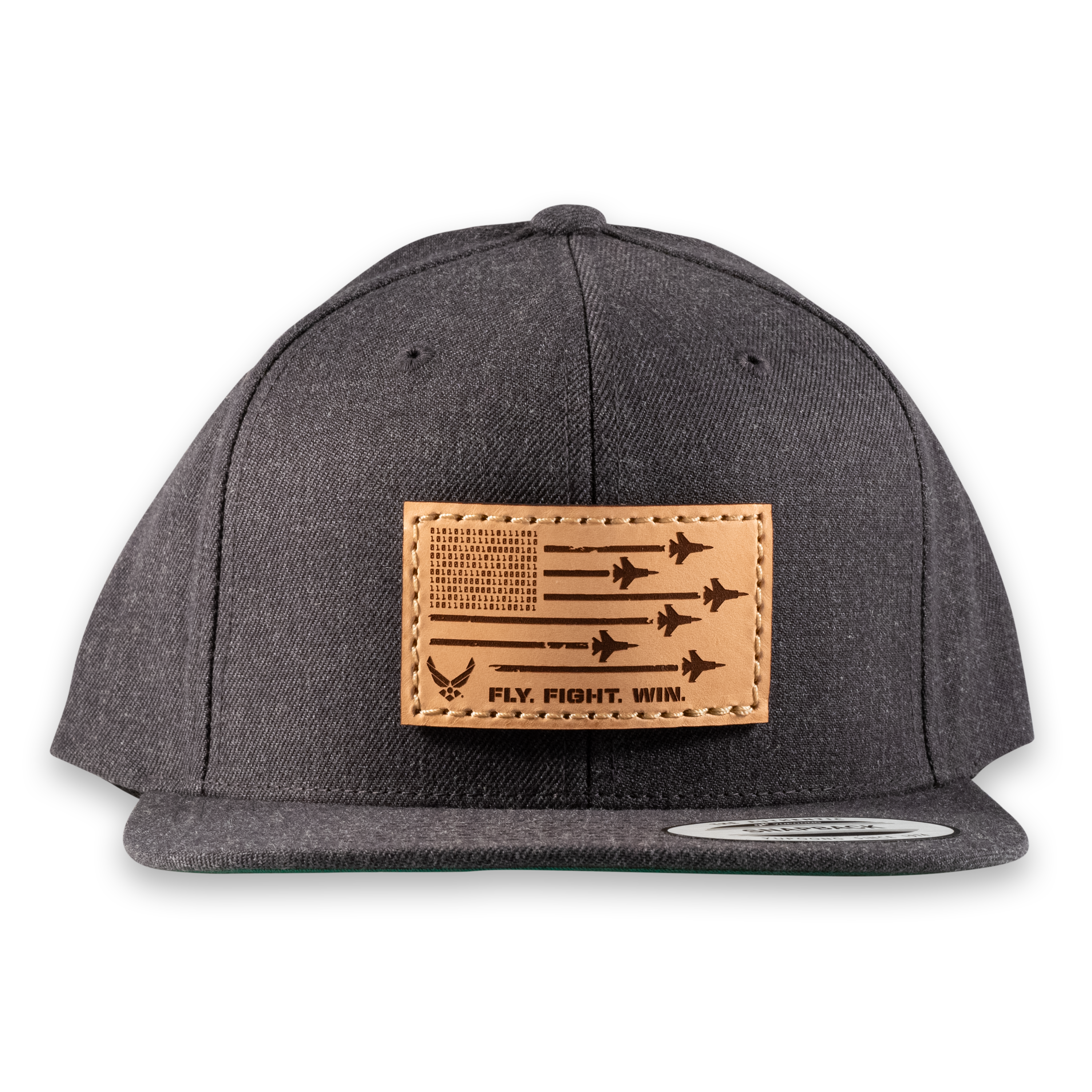 Hand Stitched Fly Fight Win Custom Leather Patch Hat. Officially licensed by the U.S. Air Force.