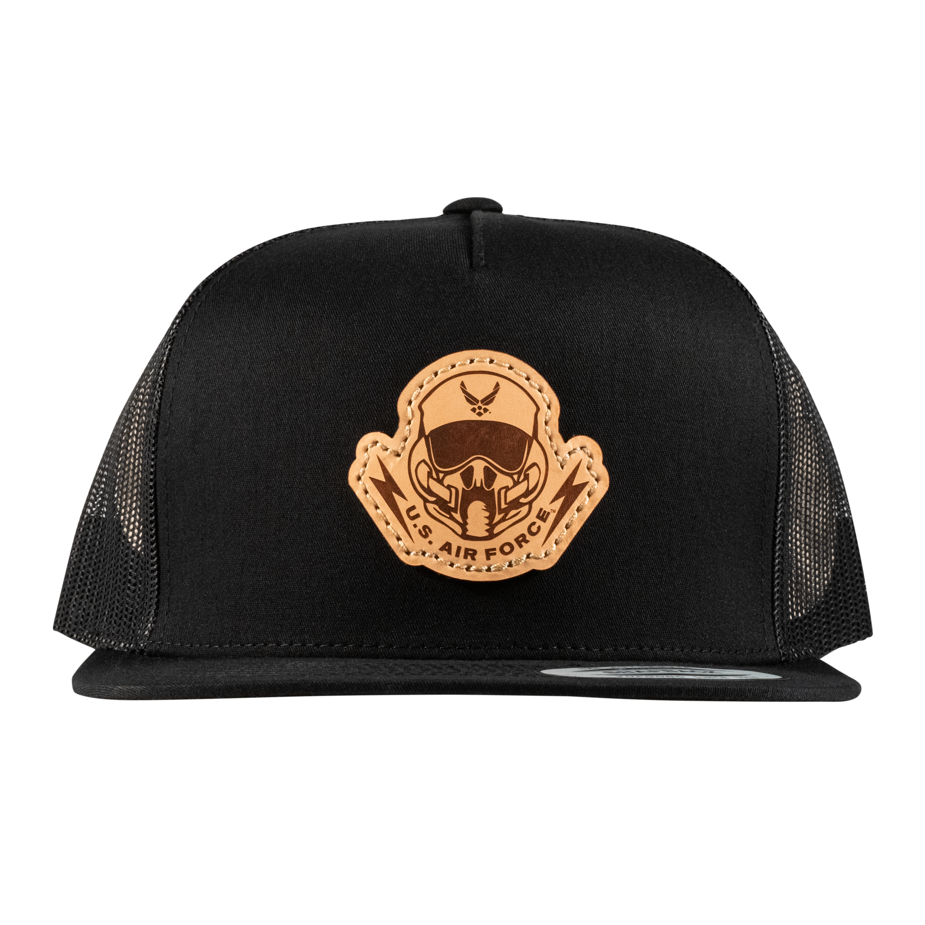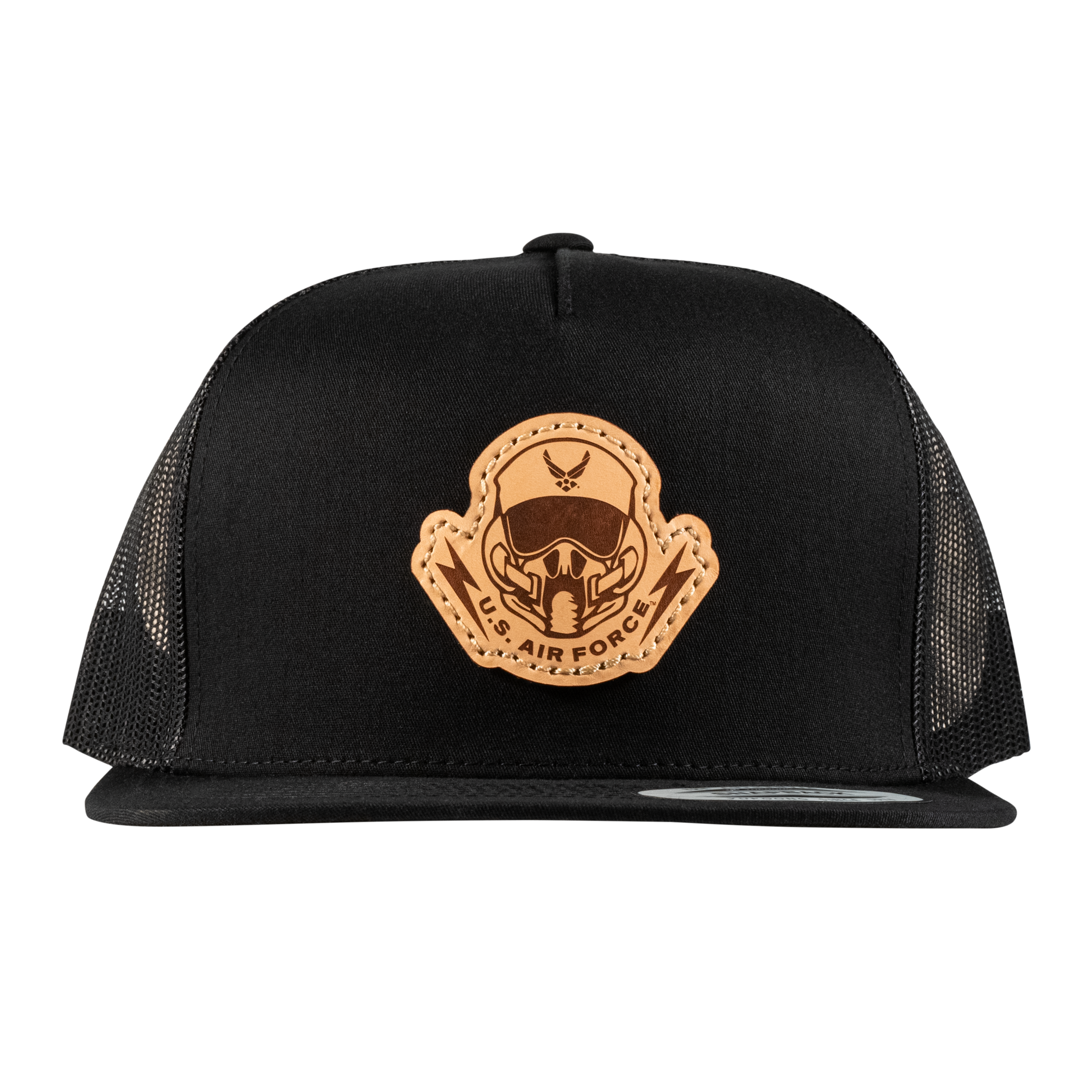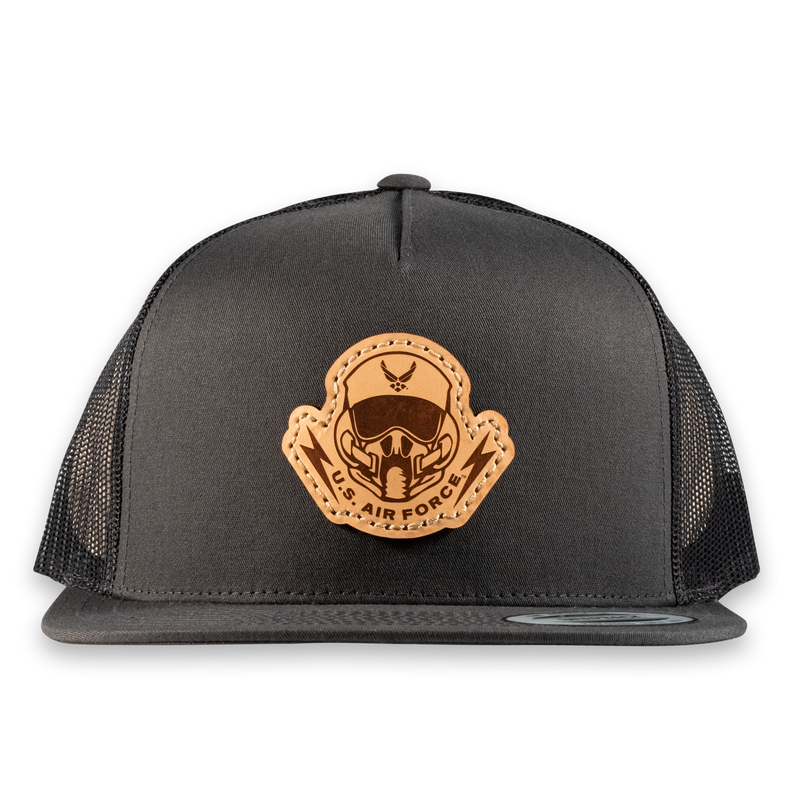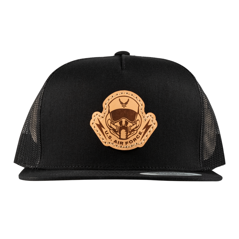 Pilot's Mask Flat Bill Trucker Hat- Officially Licensed Leather Patch Hat