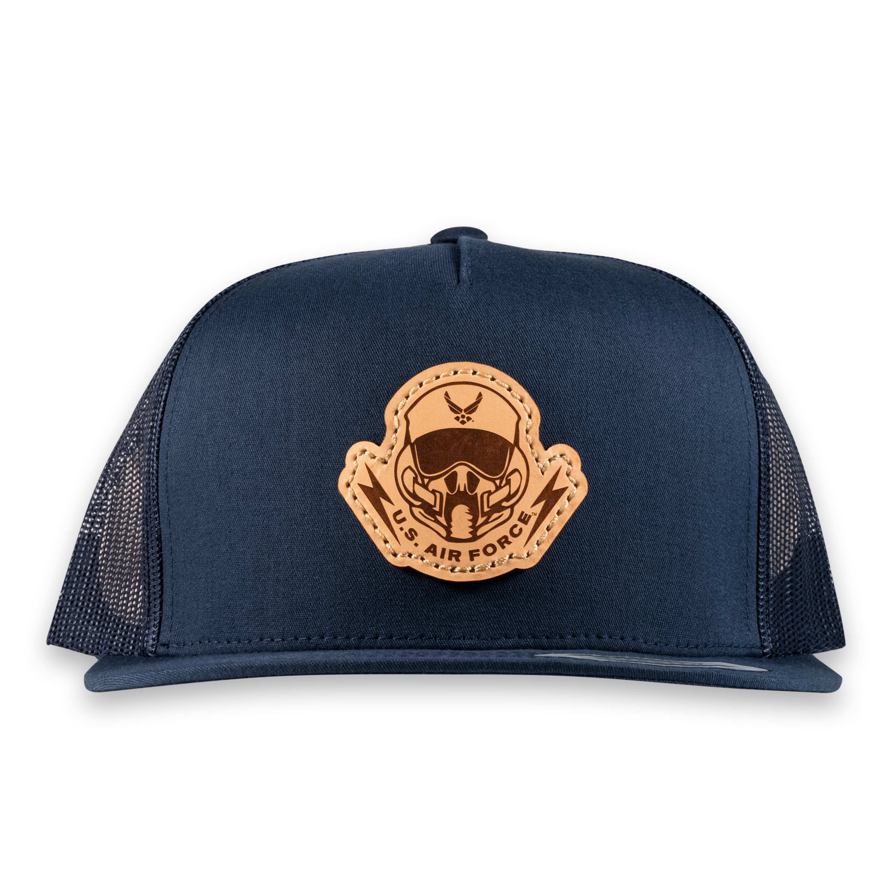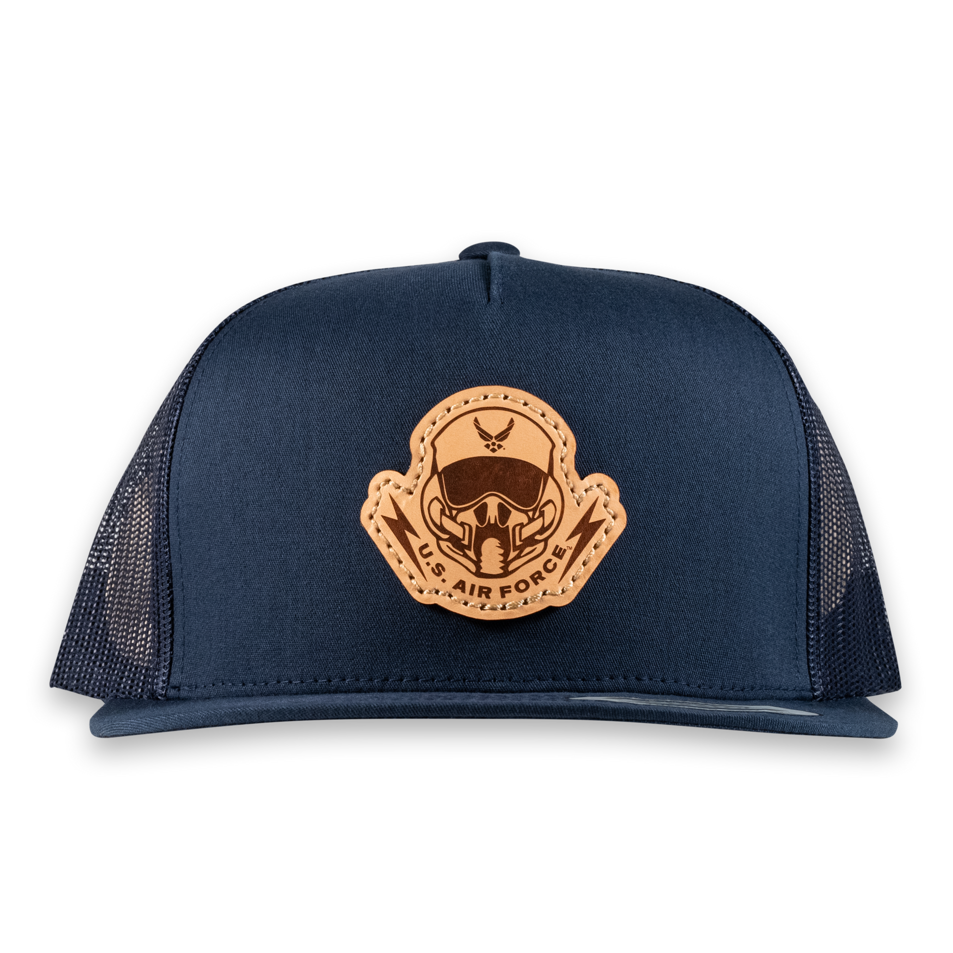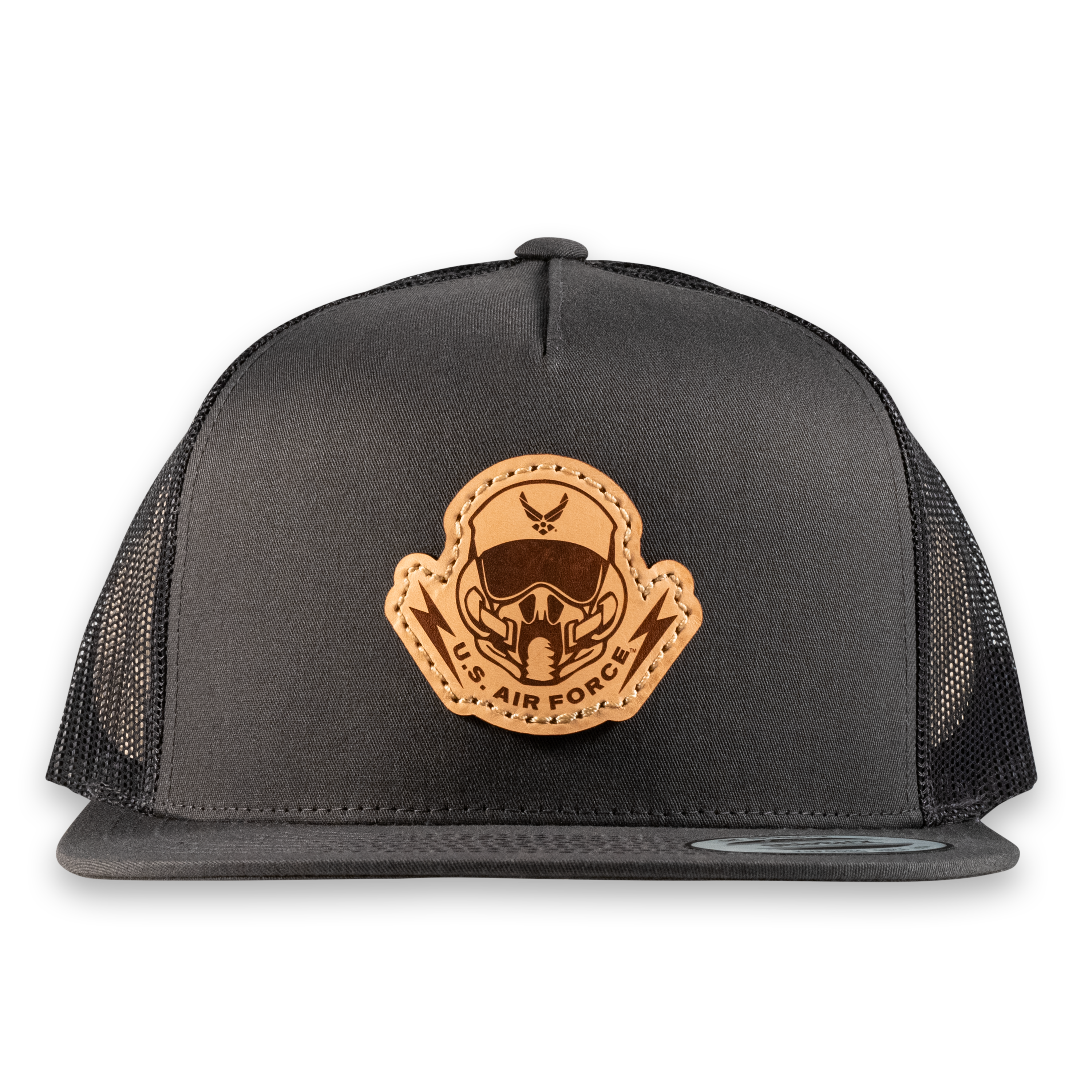Pilot's Mask Flat Bill Trucker Hat- Officially Licensed Leather Patch Hat