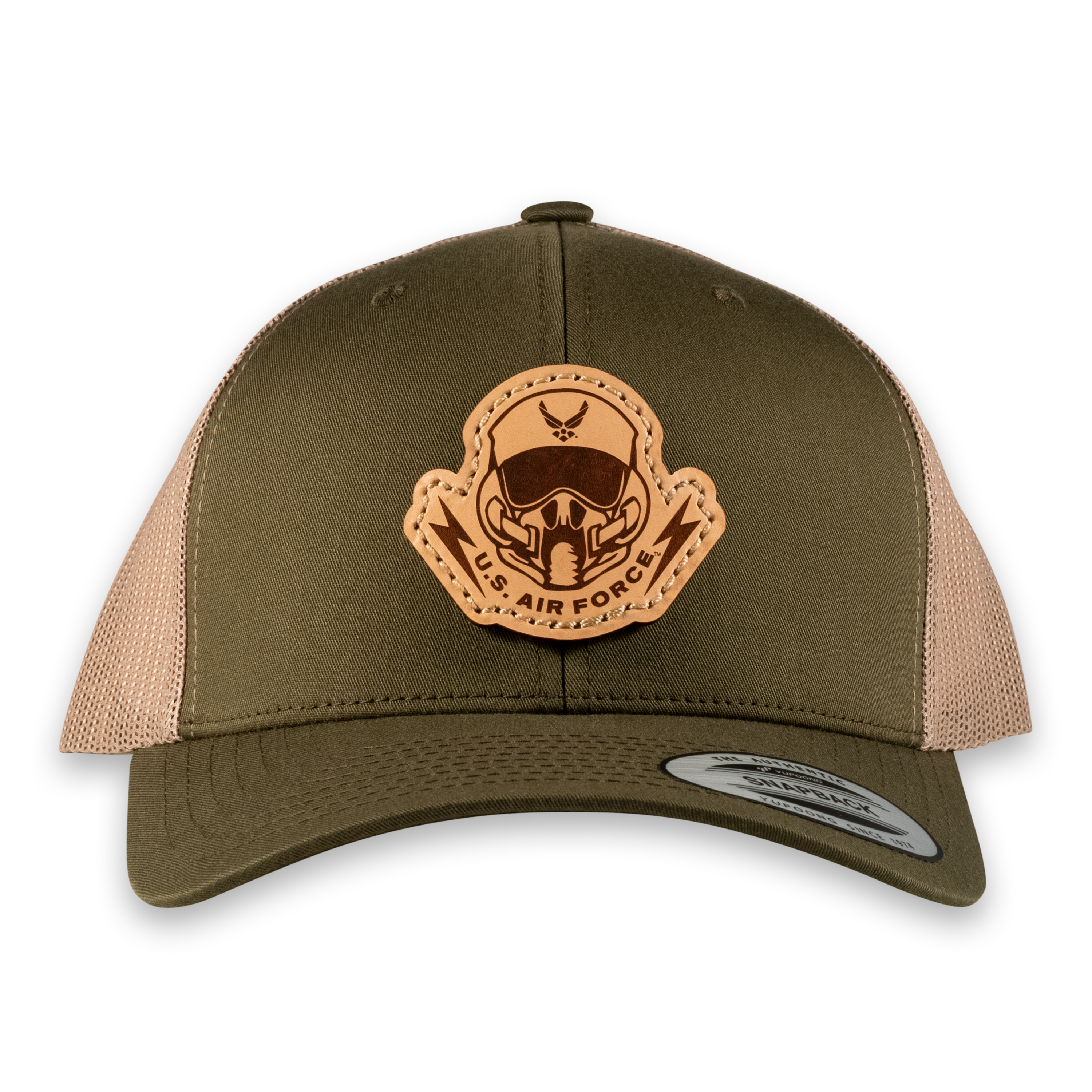 Hand Stitched Masked Man Custom Leather Patch Hat. Officially licensed by the U.S. Air Force.