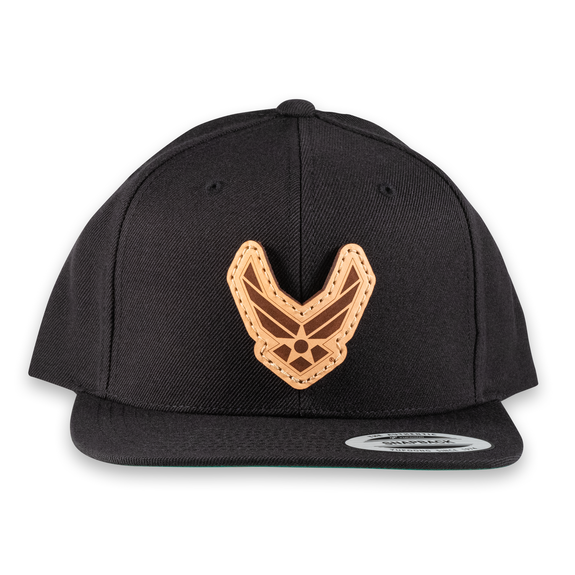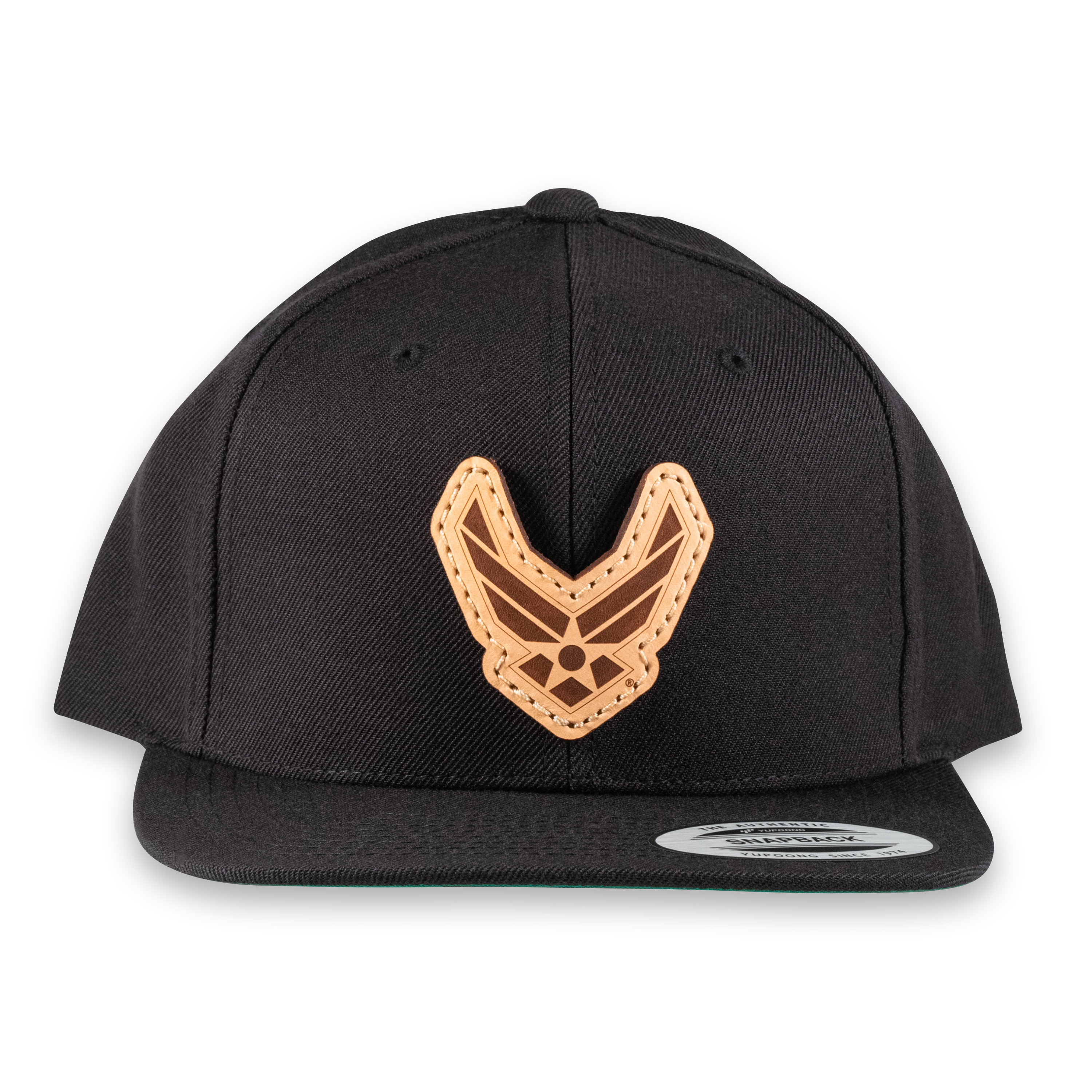 U.S. Air Force Emblem Premium Flat Bill Hat- Officially Licensed Leather Patch Hat