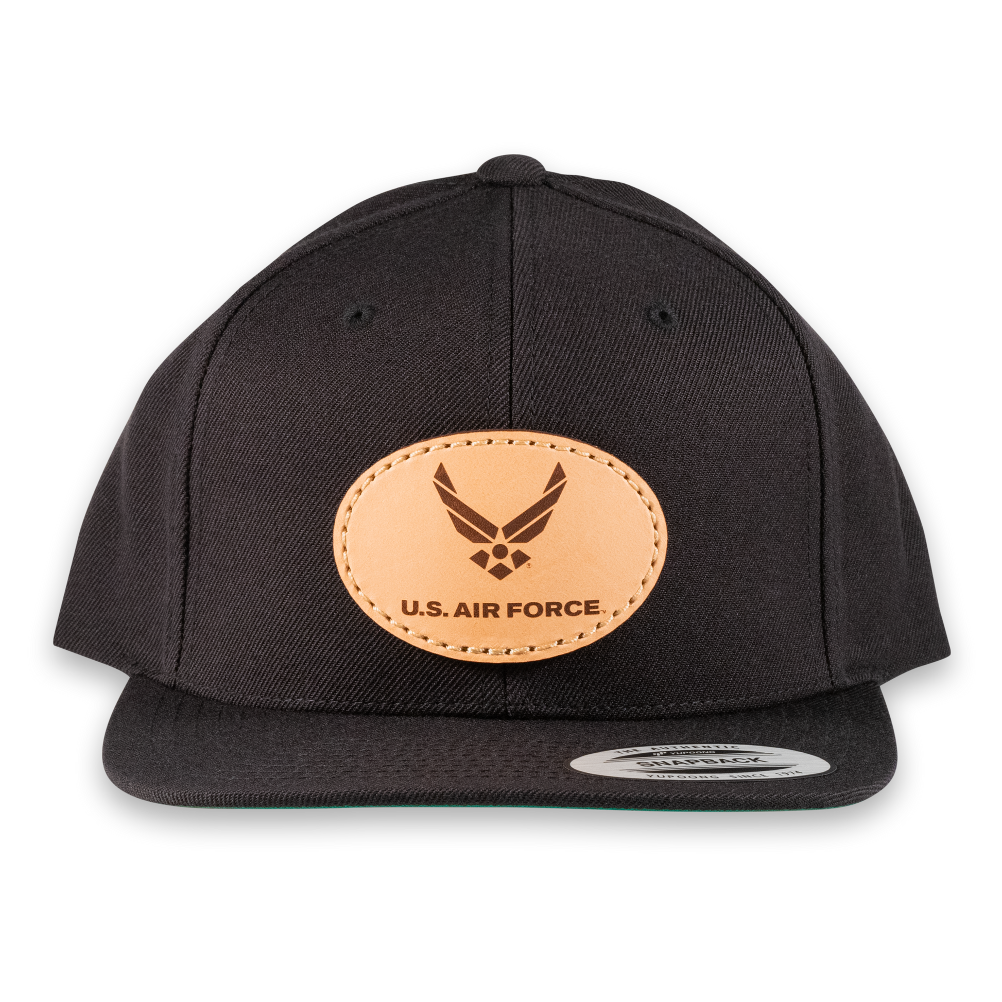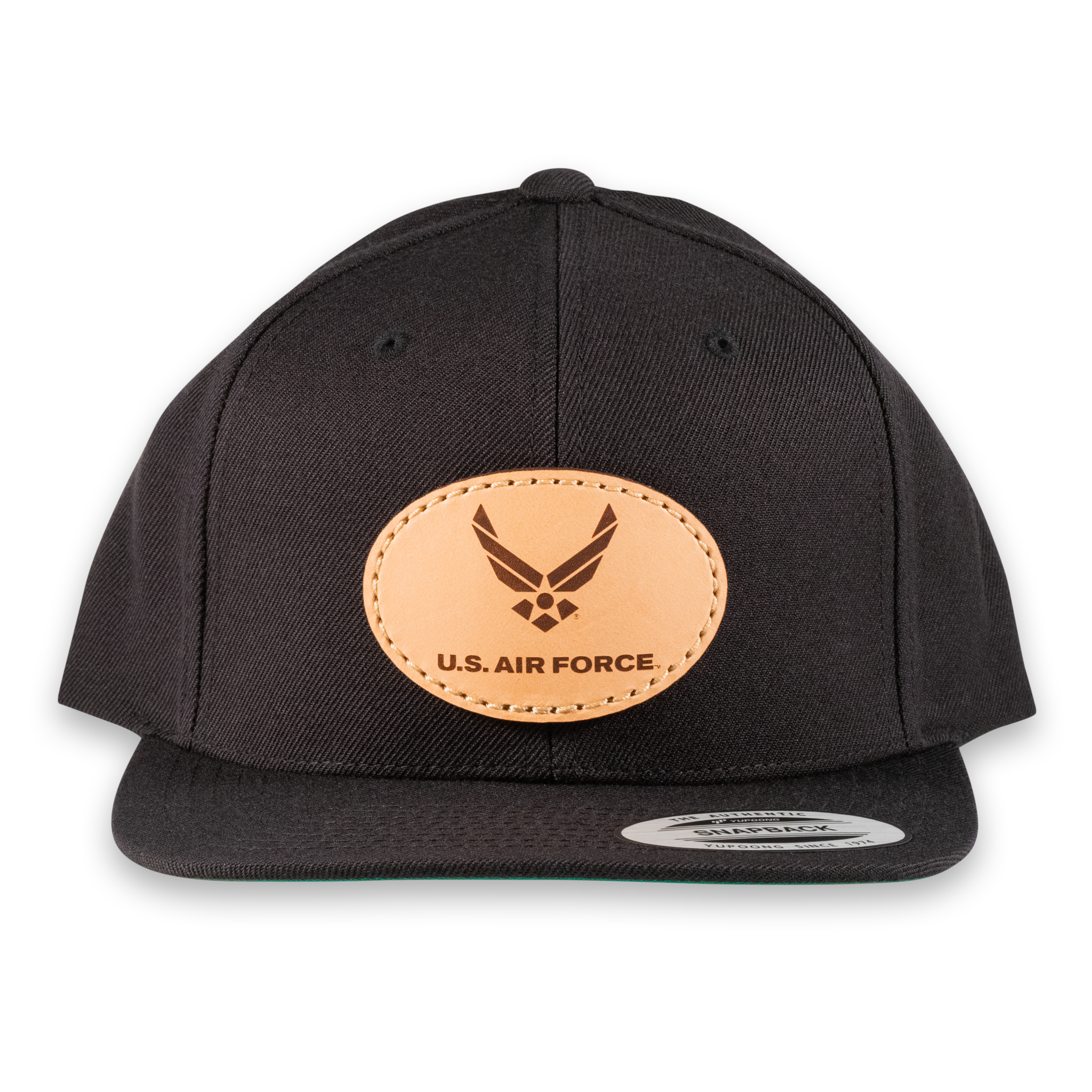 U.S. Air Force Oval Premium Flat Bill Hat- Officially Licensed Leather Patch Hat