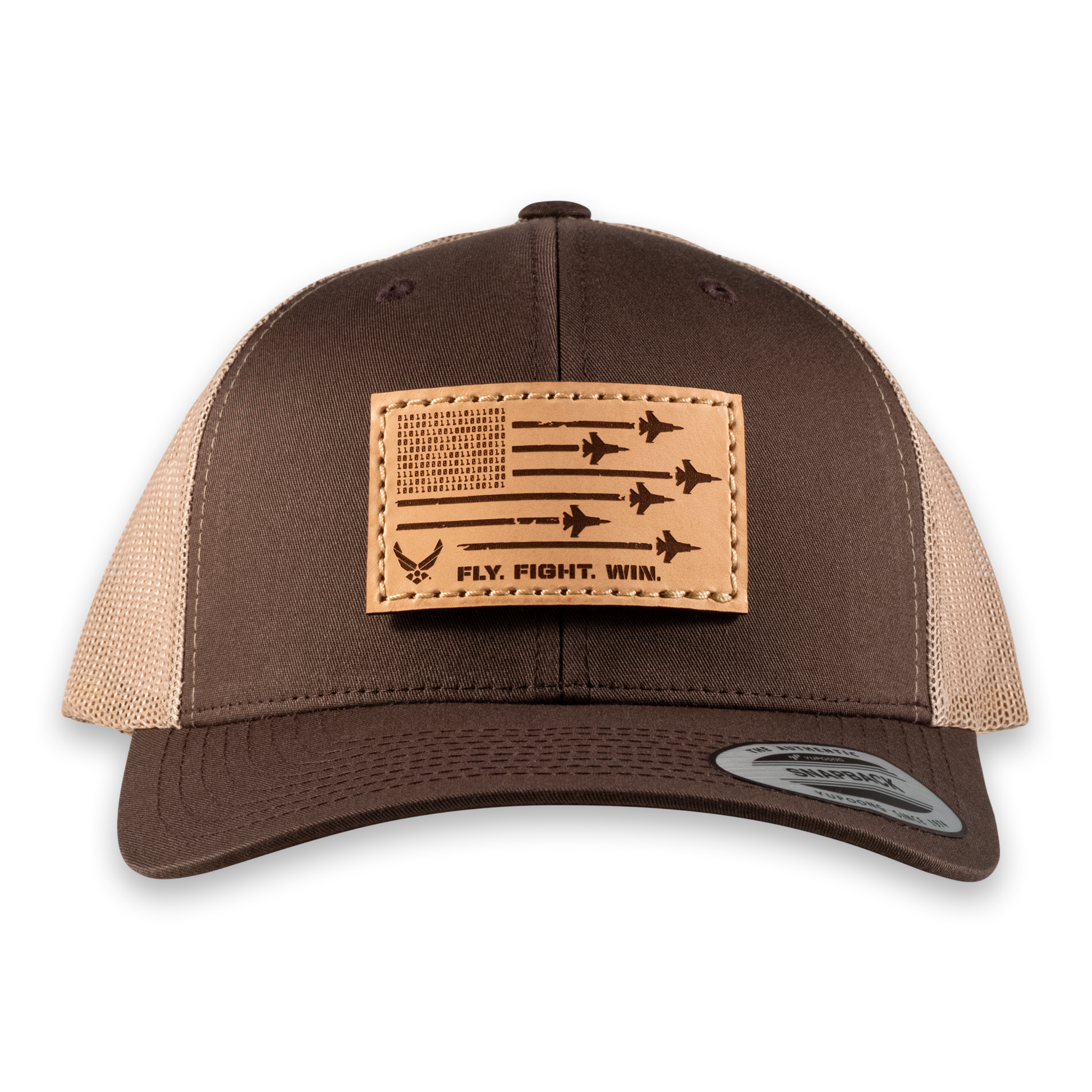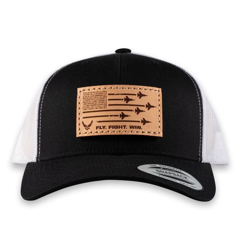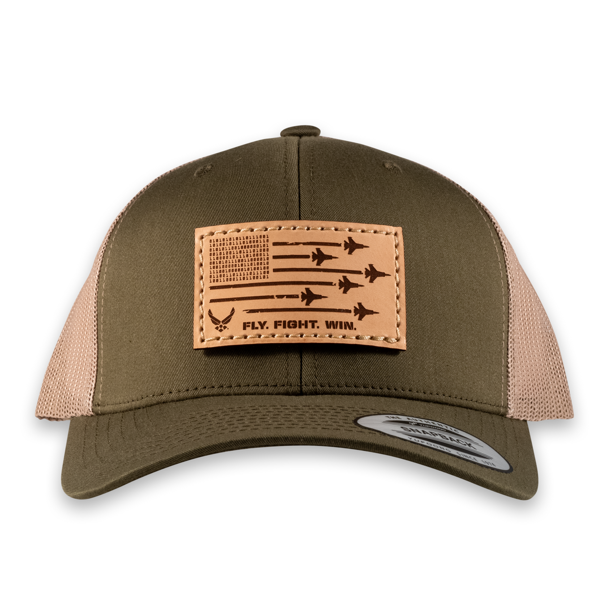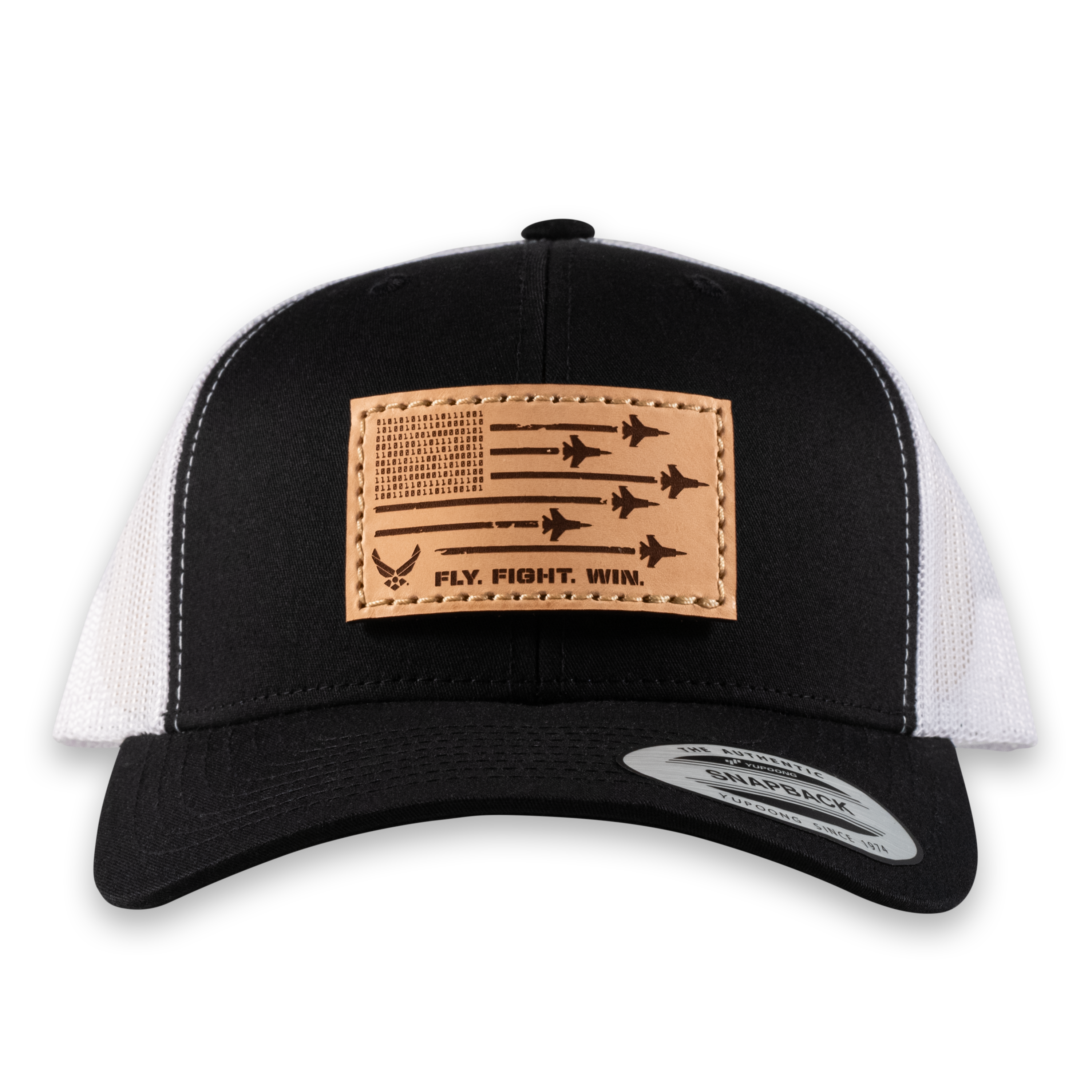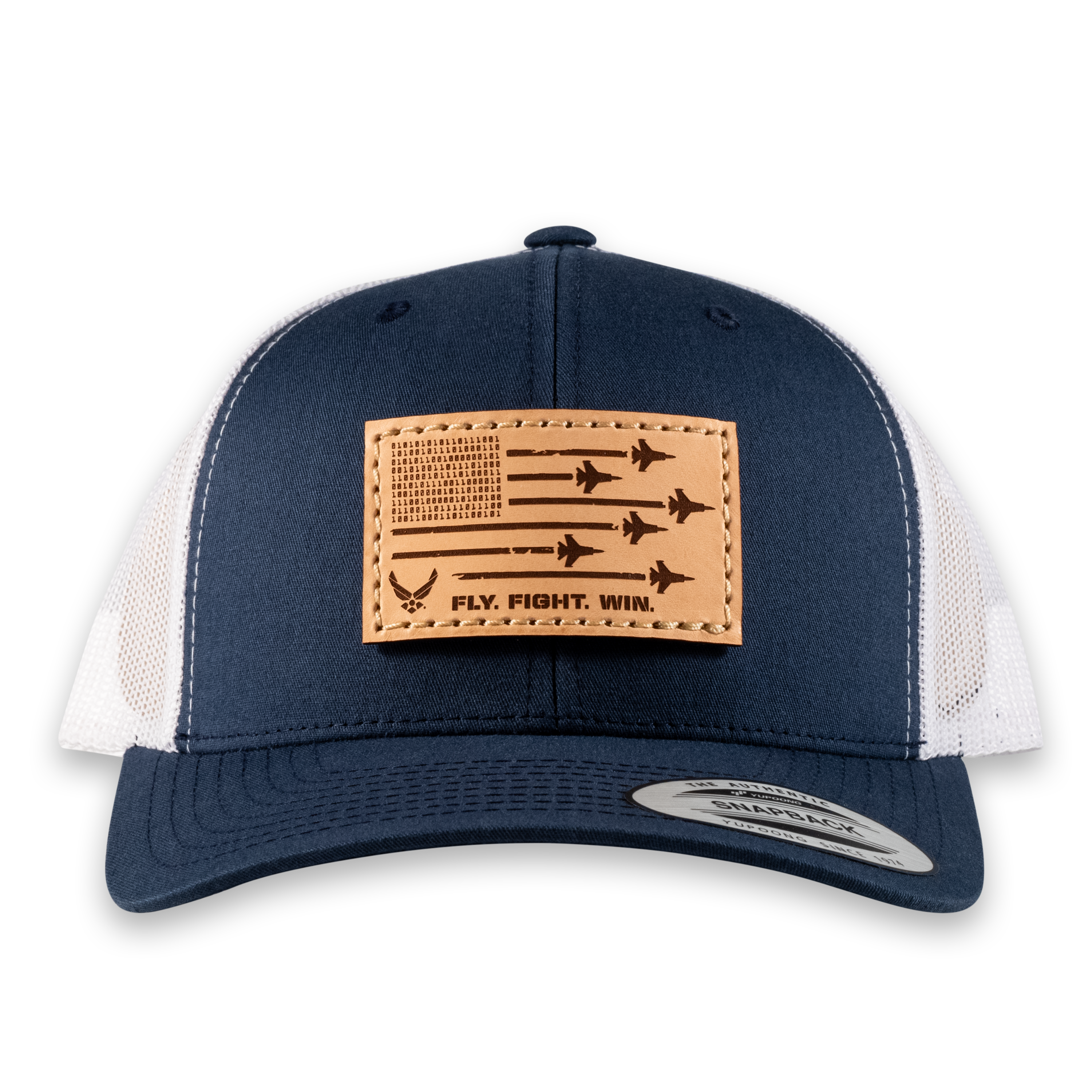 Hand Stitched Fly Fight Win Custom Leather Patch Hat. Officially licensed by the U.S. Air Force.