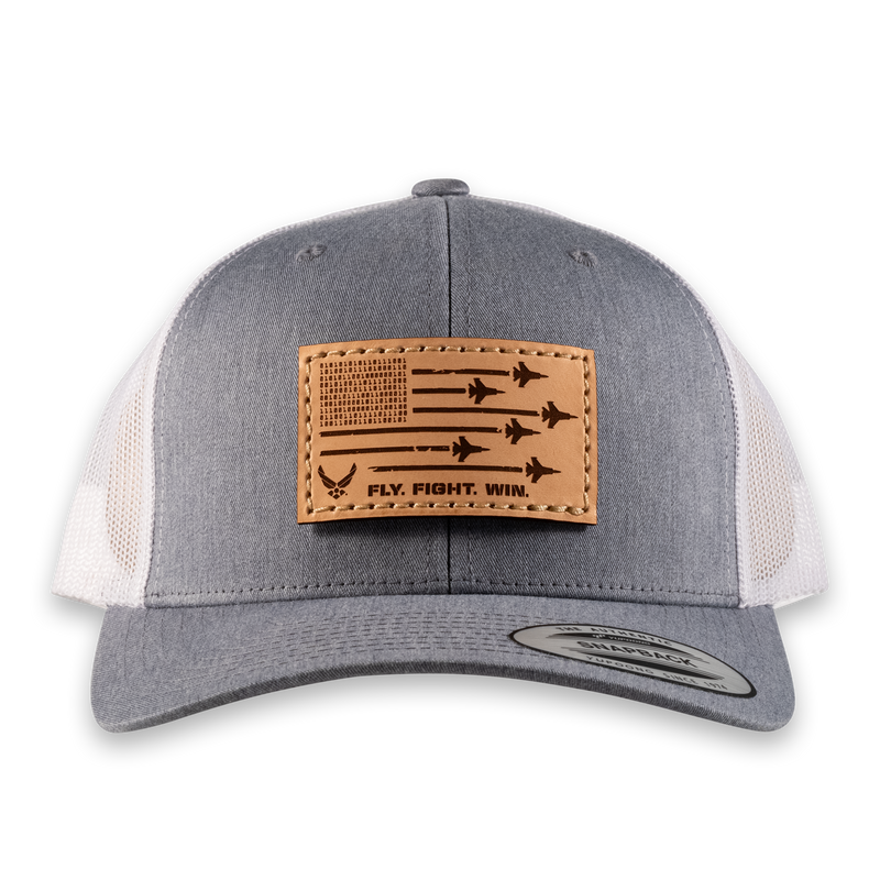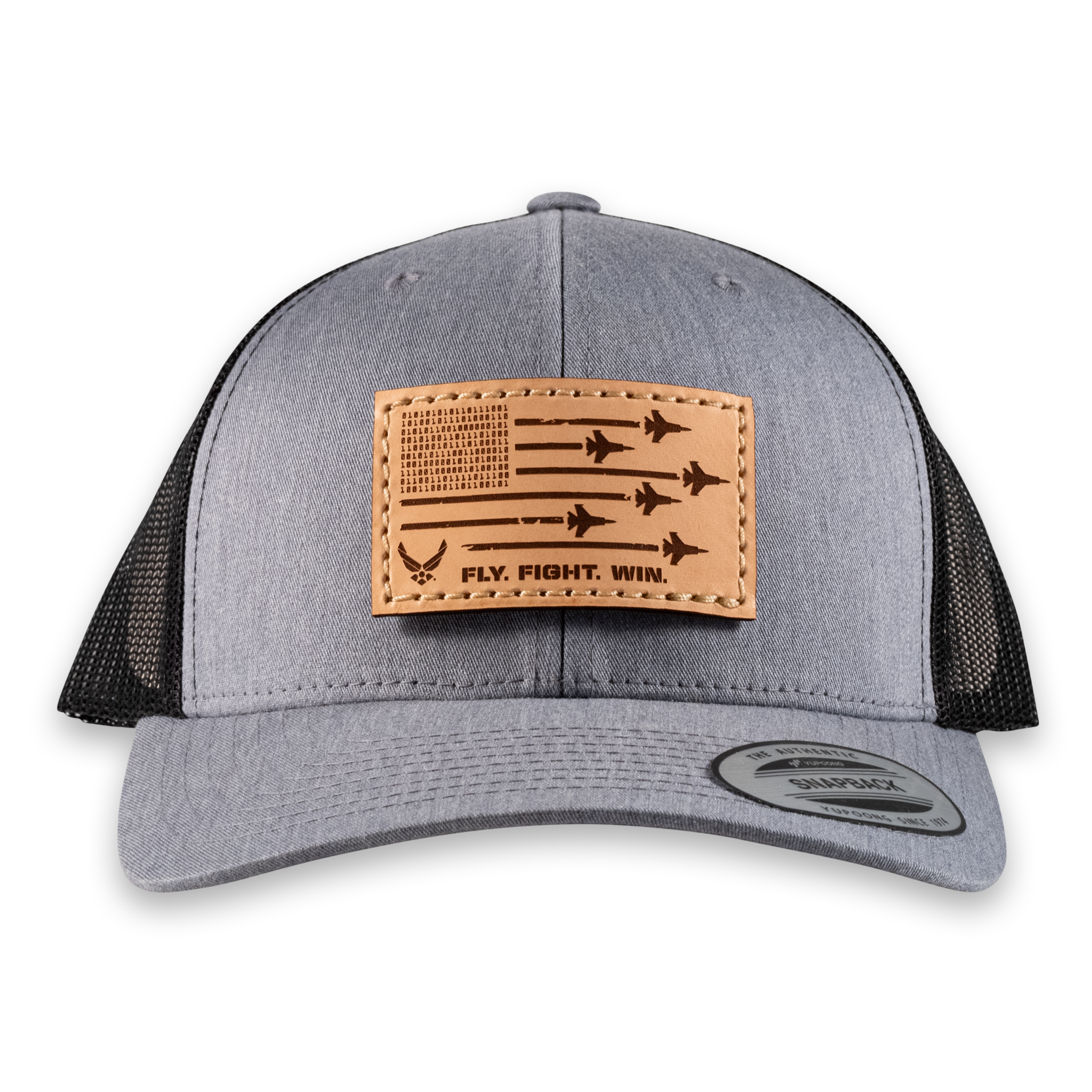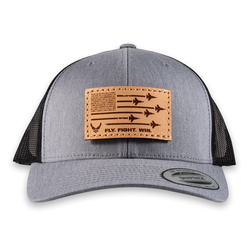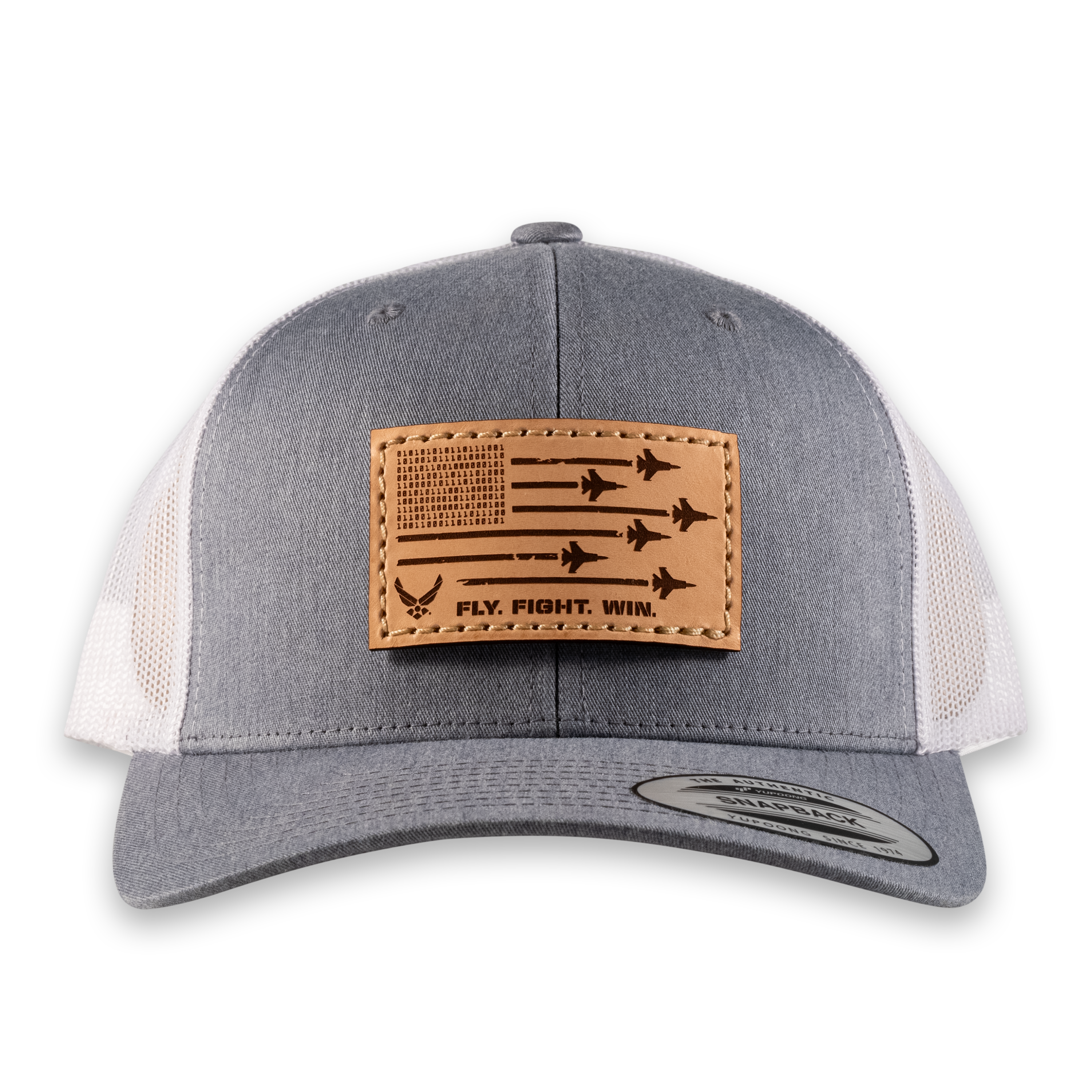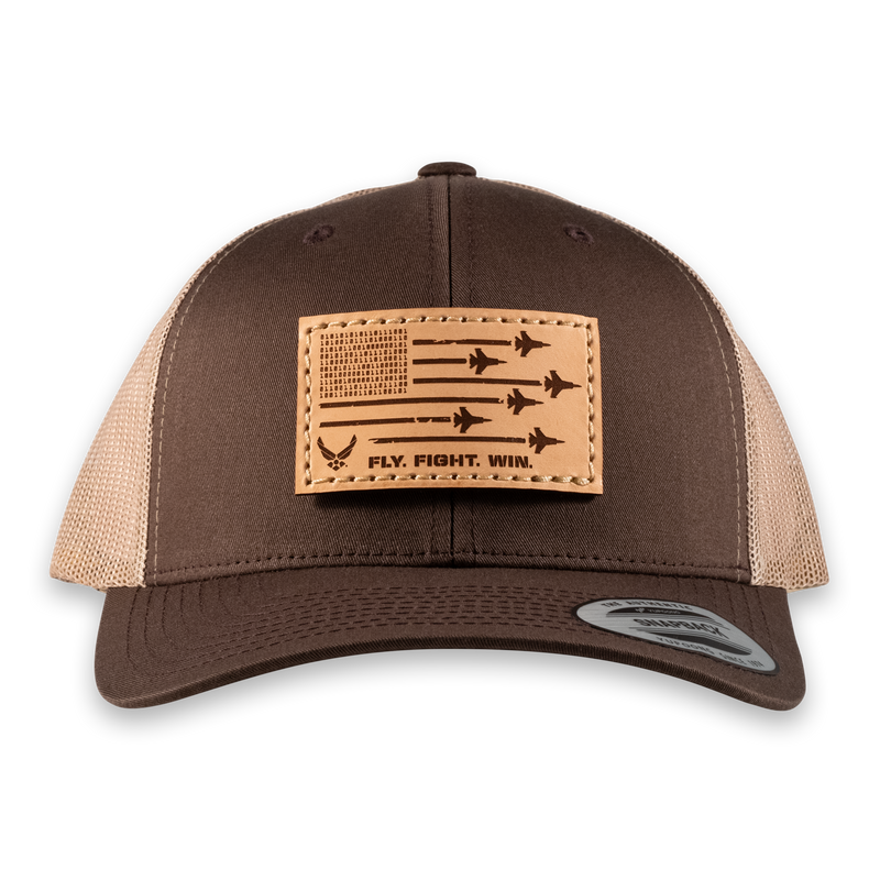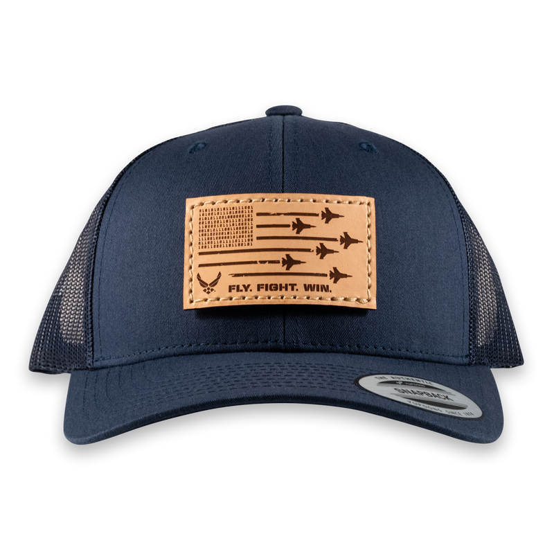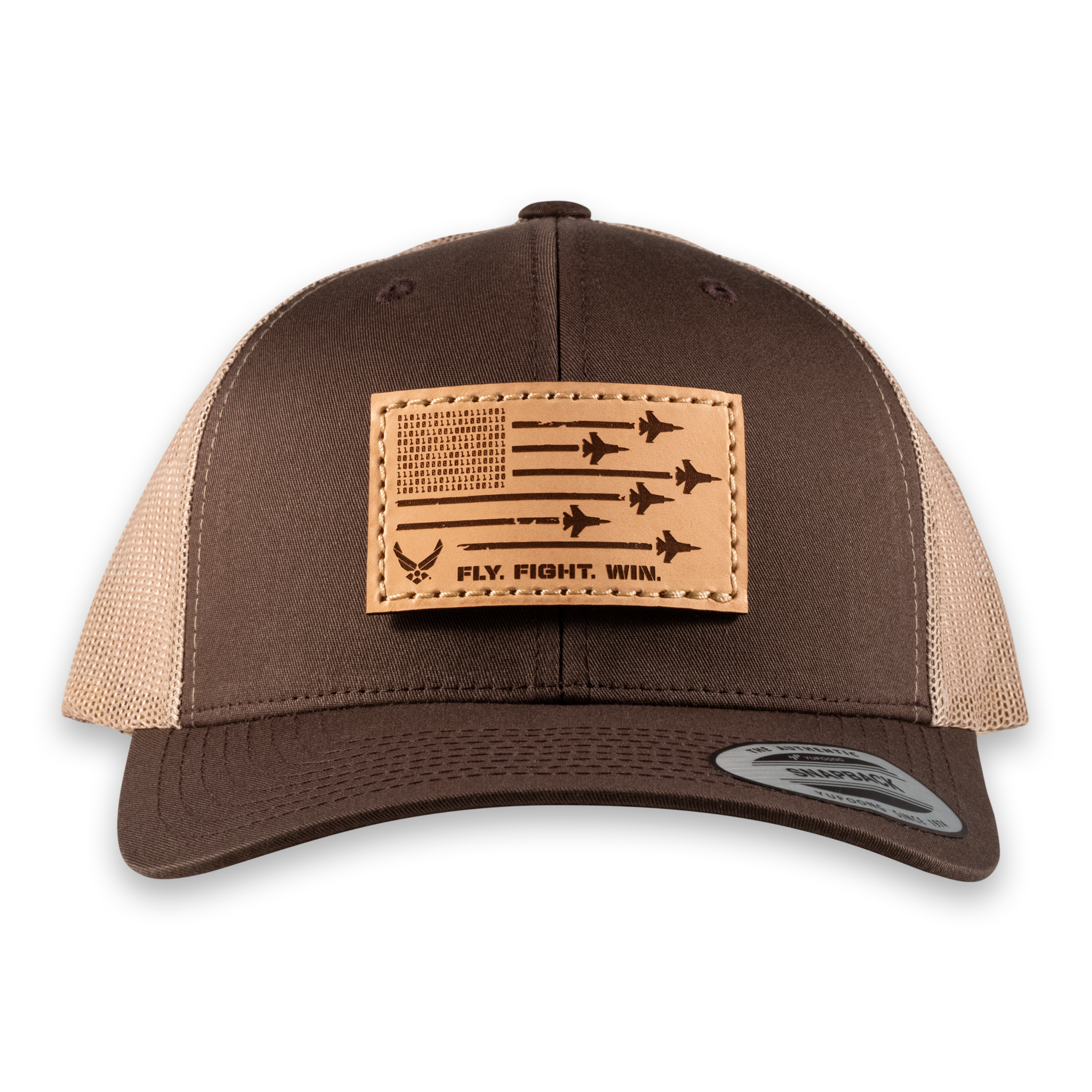 Hand Stitched Fly Fight Win Custom Leather Patch Hat. Officially licensed by the U.S. Air Force.